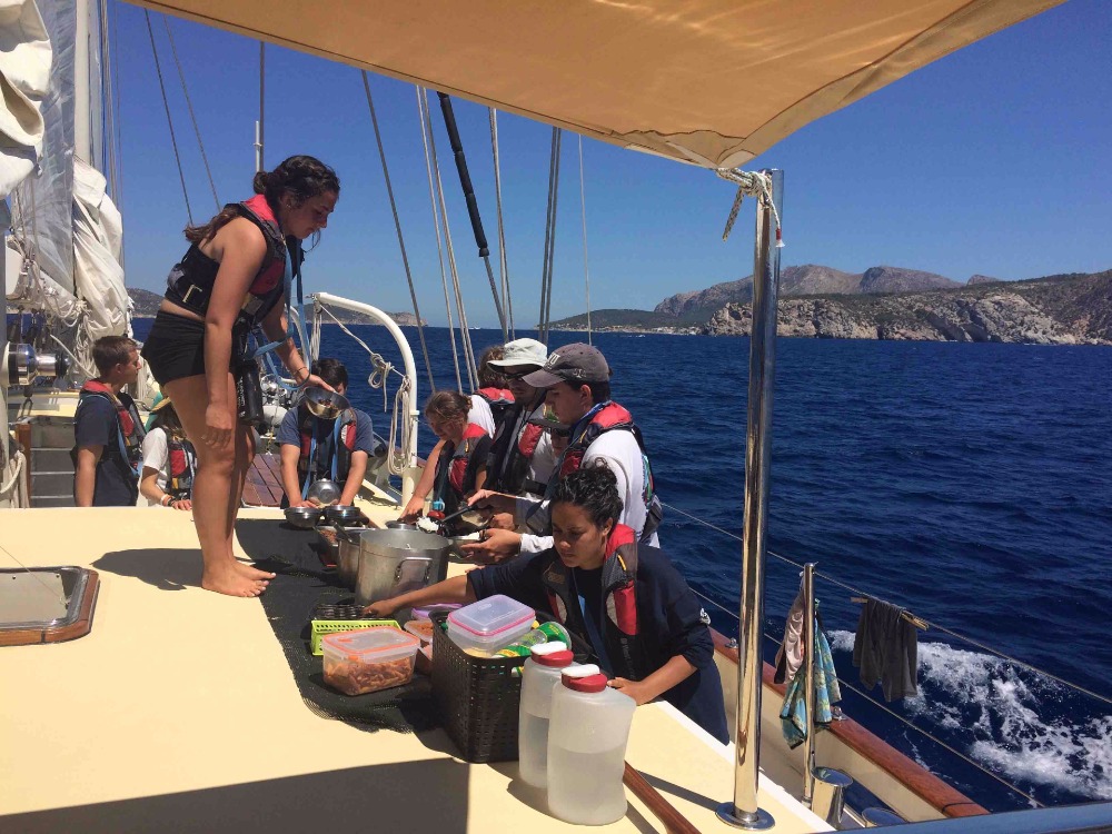 Today, we left the still waters of Palma and set off for one last passage, chasing the vast horizon. Nice seems so far away, but time aboard Argo also seems to be speeding up as we get back into the routine of life on the water. The days are eventful, nonetheless! Setting off into the wind for the last time can be a daunting thought, but what really matters is the voyage ahead. What we’ve done so far remains firmly anchored in our minds. The experiences in the Azores, Gibraltar, and Mallorca keep everyone elated and excited about both what is to come in Nice and in the immediate hours of the coming and current day. Today, Becki and Alissa both got into the spirit of the change from land to sea by setting up a barbershop on Argo’s stern. Now, Chapman, Richard, Aaron, Nina, Tina, and soon more of us will have sharp new haircuts for the voyage. A fresh breeze floundered about us as we pulled up the main and forward staysails, and though there is not any particularly windy weather predicted to come our way, we are still making good time. Mallorca waved goodbye to us as we slid by the towering cliffs and stoic rock formations. The Navigation Master test tomorrow seems to be an anthill compared to the beautiful scenery, and each and every one of us has our own theme songs playing in our heads, spurring us onward on our journey. What would your theme song be as you set sail for the curve of the Earth with land fading from view behind you?