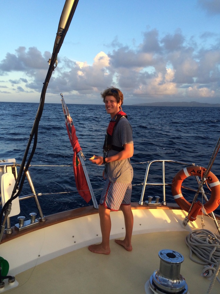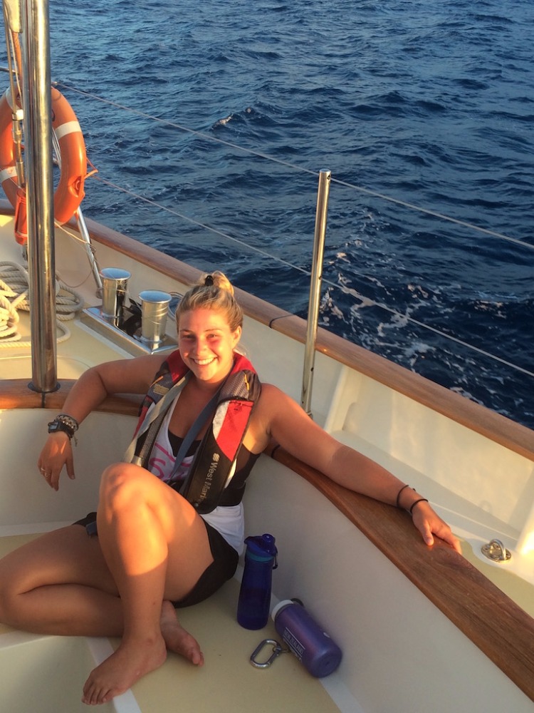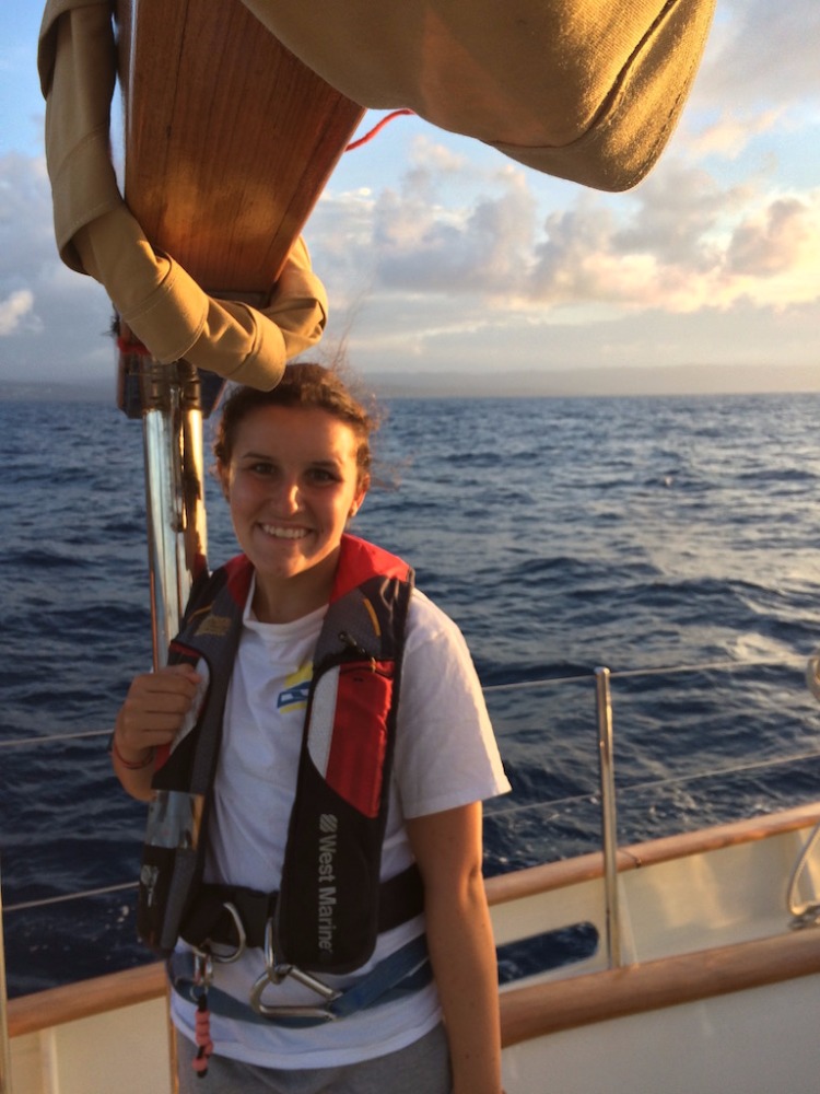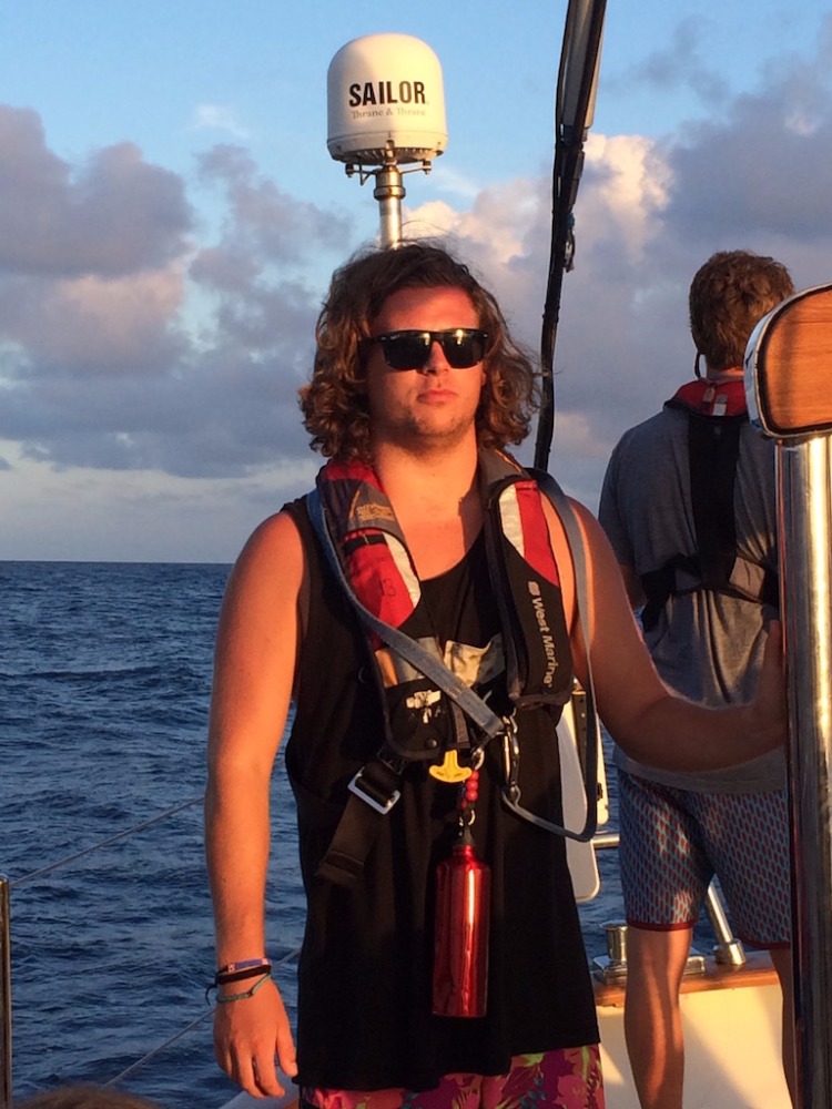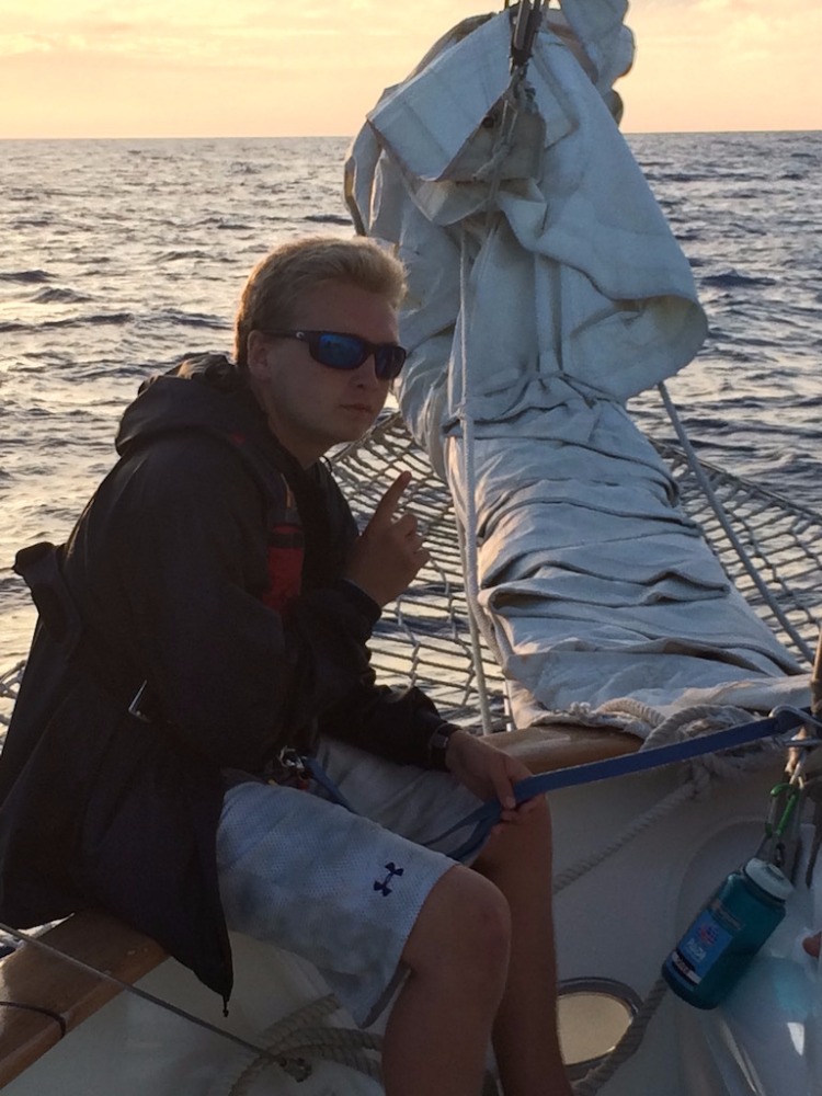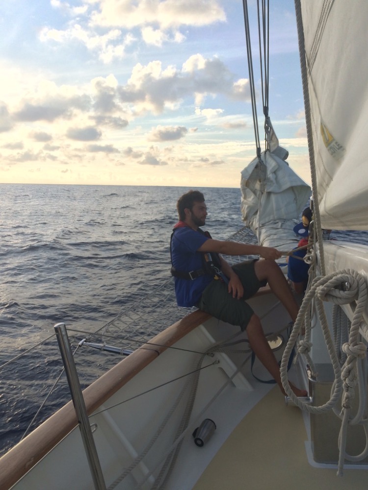 Today started off tough since most of us stayed up late to finish our oceanography literature review (like authentic college kids), so our gas tanks were empty for passage prep. Maybe we were just sad to leave Jamaica, though, which has been my favorite island so far. After the long struggle of making our vessel seaworthy and getting up two sails, we were underway to the Cayman Islands. For the past few days, we’ve been docked, and it’s funny, but before Jamaica, none of us really realized the heat of the Caribbean sun. The wind whipping through our boat cooled us off, but being stationary in breezeless Port Antonio was hard. We were looking forward to getting underway to get the air moving around us again, but the weather gods weren’t on our side. With next to no wind, we were forced to fire up the engine to make it to Grand Cayman on time. Motor-sailing for long stretches like this is strange. Eventually, the days start to morph together.