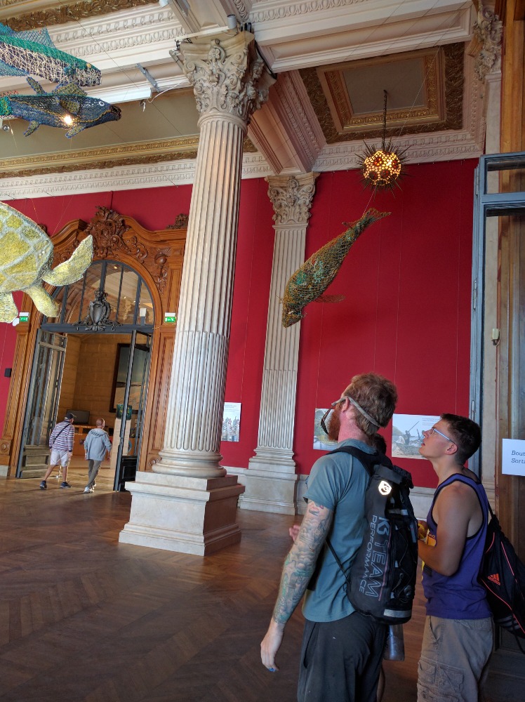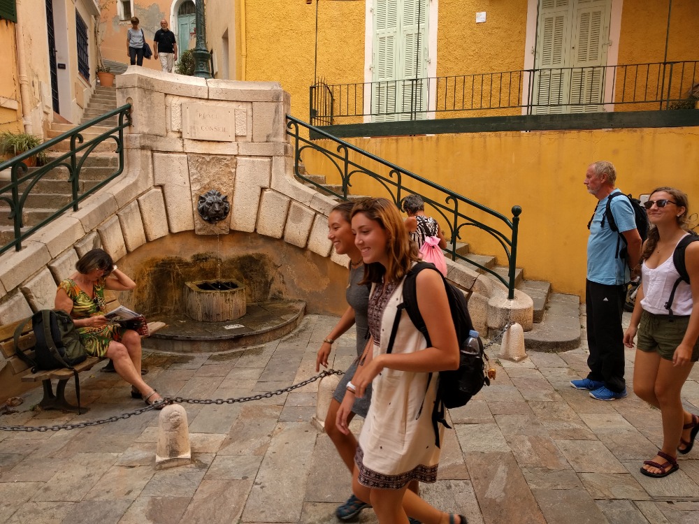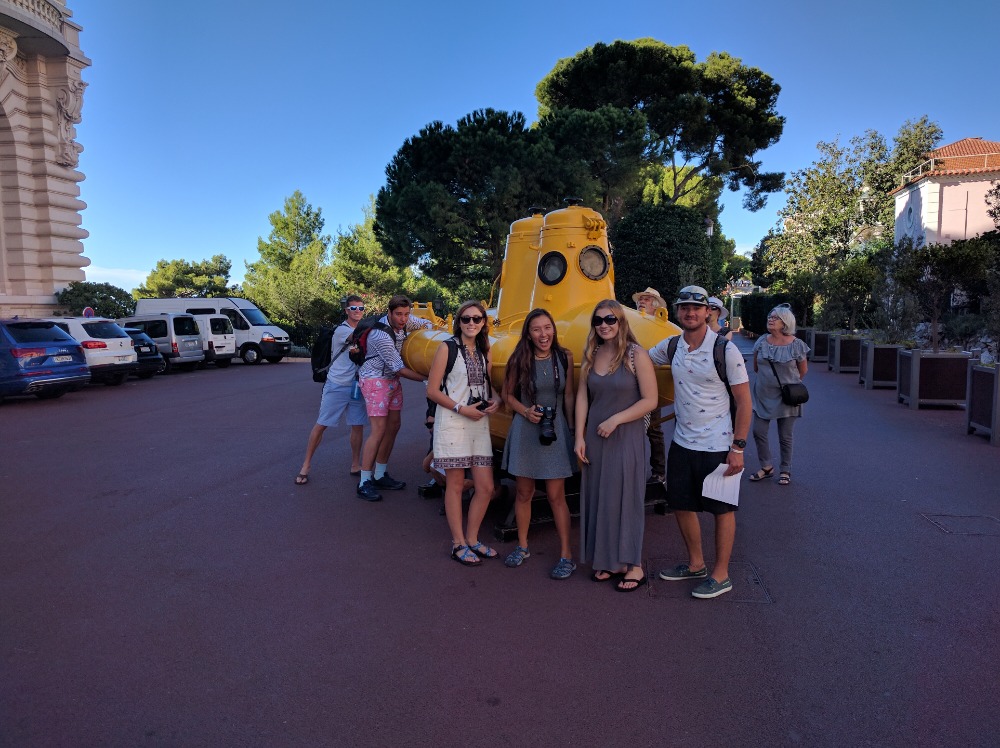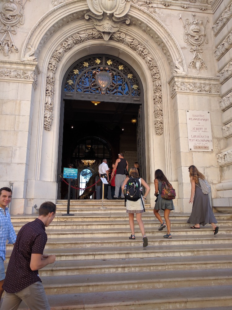 After yesterday’s adventures in Ville Franche, the students of Argo boarded a train and headed to Monaco. Eager to see marine life, we headed straight to the oceanographic museum. In pairs, we completed a scavenger hunt worksheet, documenting an invasive jellyfish species, marine life native to the Med, and one horrifying-looking underwater suit from the 1700s. Once we had seen all the creatures, skeletons, and art, the group split up in search of lunch. Some of us headed to the casino, others headed to the palace, and Carmen and I searched for the first missing iPhone of the trip (sorry, mom & dad, it was mine). After making a solid, but failed attempt to find my phone, we met up with the rest of the group and devoured some crepes.