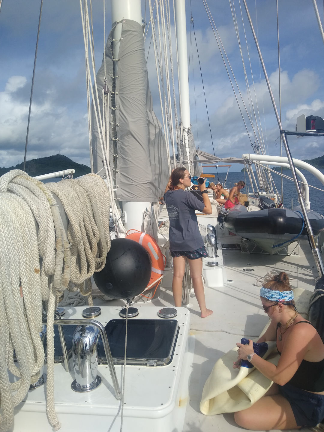 Finally, after a long 22 days at sea, we finally got to explore and see all that Palau has to offer! It’s so stunning and pretty here! Started off with many phone calls and video chats to home! Then the much-needed downloading of new music and movies to keep us entertained (who knows when we will get wifi again!) Some people went and did random things. Some went to see the downtown areas, and others stayed near the port and shopped and tried the local food (which was so good, after only eating food out of a can for so long!)also had to restock on snacks! Went to the local market and got drinks and snacks! (Ice Cream was so good!) Meet back at the boat at 2:30 and have a wonderful presentation by a local on the history of this beautiful country. It was so cool to hear how far back their rich history goes and to learn about the amazing ecosystems and animals that we will hopefully get to see in our short time here in Palau! We are getting ready to welcome two new guests to the boat tonight, so we spent some time making sure the boat looked ship shape and in order for our new arrivals. There is a metro shower running from tonight till the 5th of August, so we got to turn the deck lights off and look at the stars, which were as pretty as ever! Saw a few metros but hoping to see more further from the main Island. The new arrivals made it safely really late last night! Many people stayed awake to greet our new crew members while others caught up on some well-needed sleep in order to prepare for the restarting of the anchor watch tonight!