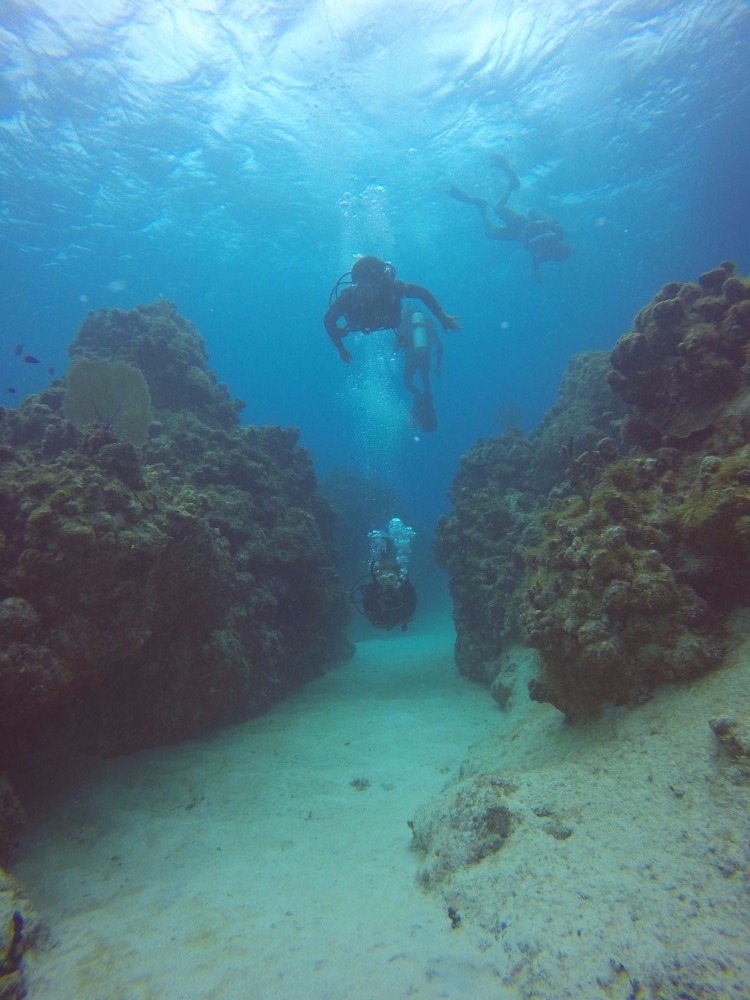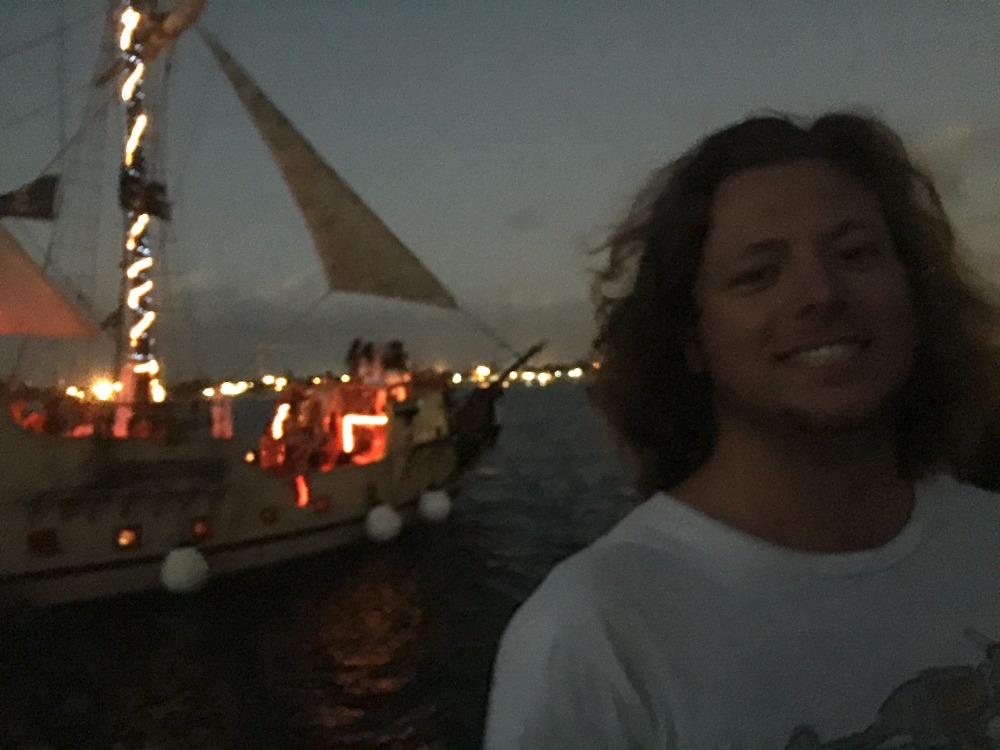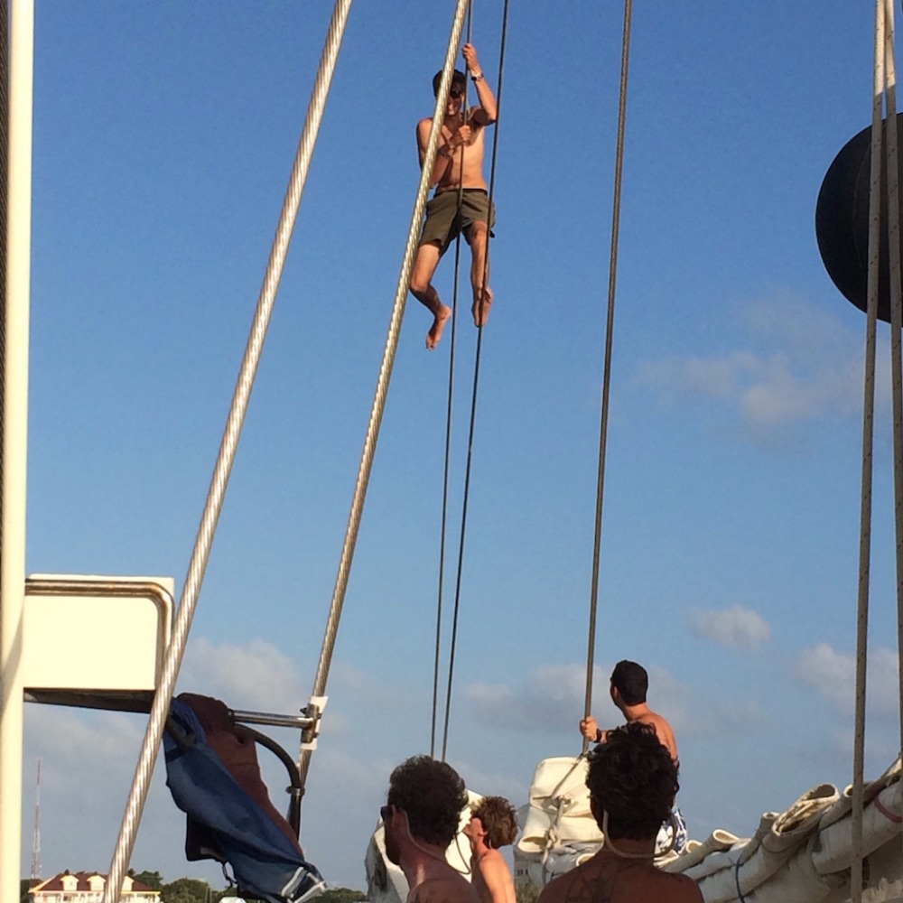 Today is the last day before we head off to the internet black hole known as Cuba. In the morning, we were woken up to Captain Ben Diamond’s delicious (and incredibly filling!) rice pudding. After that, we sat through Scuba Steve’s Marine Biology exam on major phyla. After we had worked our brains, our squad split into three groups: one to go diving, one to enjoy the shore, and one to go with Tina, our head chef, to fill up our provisions for the next 2+ weeks. I personally went with the diving group, where we discovered the largest lobster I’d ever seen, just chilling out in the middle of the ocean. After scuba diving, we then headed out to shore. We headed over to Rackam’s, where yesterday’s night out kids had headed out. We were served by a very kind waitress, Stacey, and had very good food accompanied by an even better conversation. After that, we walked around Grand Cayman, exploring some shops and attractions, before settling on the very nice Cayman Coffee Club. After a nice coffee break, we head back to the boat, where we did some preliminary boat prep in readiness for the trip tomorrow. After that, it was time for a shower! Before, I had looked on in jealousy as others dove off the boat doing back-flips and whatnot, but not today! I had learned to dive yesterday, so I tried increasing my repertoire of diving tricks: Keenan and Orren were particularly helpful in teaching me the back dive and front flip. After that, we enjoyed a fine dinner of chicken curry when we were interrupted by a strange small-world coincidence: Oscar’s friend from back home, “Bubbles,” cruised by us like Penelope Cruz on a Pirates of the Caribbean ship. We all waved as she sailed off into the distance. Then we had a presentation on the history of piracy in the Caribbean and went off to bed!