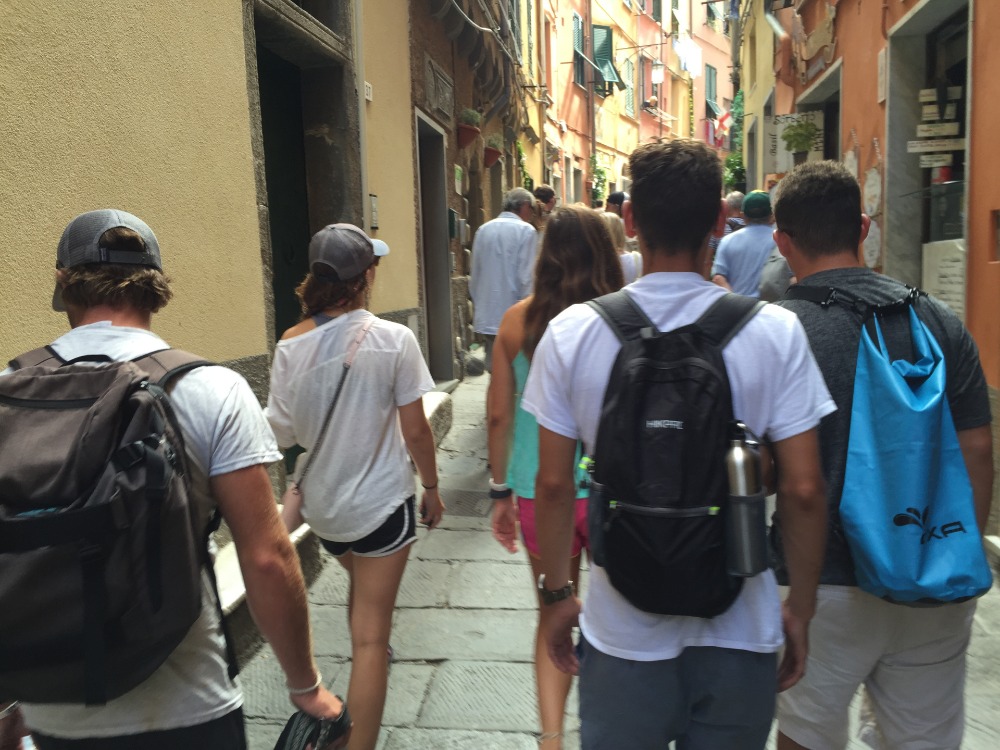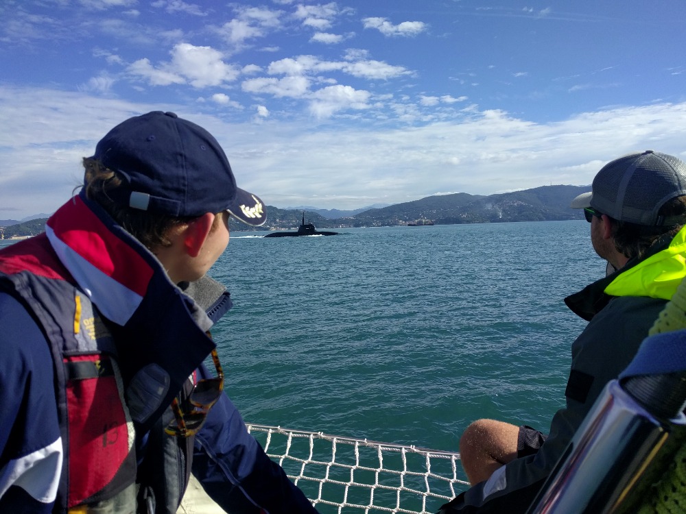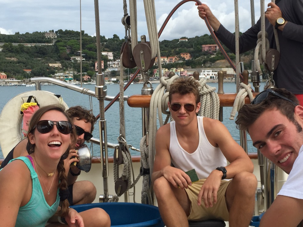The crew awoke this morning to accompany watch team three as Argo sailed into our second port, Portovenere. Calm waters and clear skies welcomed us as the small mountain town grew closer and closer. After a brief encounter with the Italian Navy, Argo dropped anchor in the quaint harbor, surrounded by colorful villas and superyachts. We jumped to the task of cleaning up the boat and putting away the sails, and were rewarded with delicious tortilla soup. Immediately following lunch, the crew gathered in the galley, eagerly awaiting the opportunity to explore the countryside village before us. We piled into the dinghies and headed for shore, where we were met with Gelato, pizza, and friendly locals. A few of us got the chance to explore a nearby grotto and rock formation, while others decided to check out a local castle. It wasn’t long before the time to return to Argo had come, and we made the journey back for dinner and class. Tomorrow we’ll be exploring the area a little more and visiting Cinque Terre, the home of pesto!