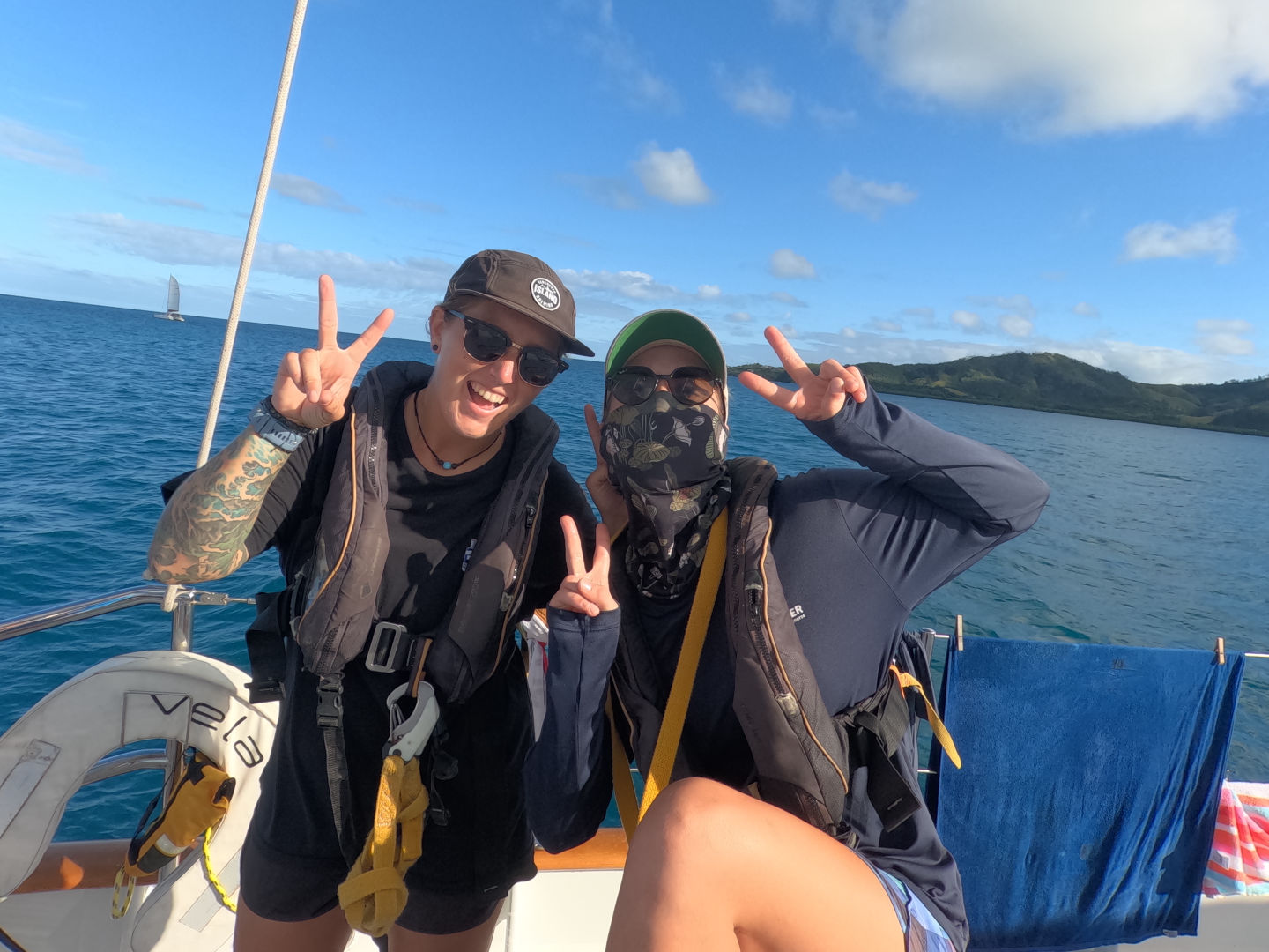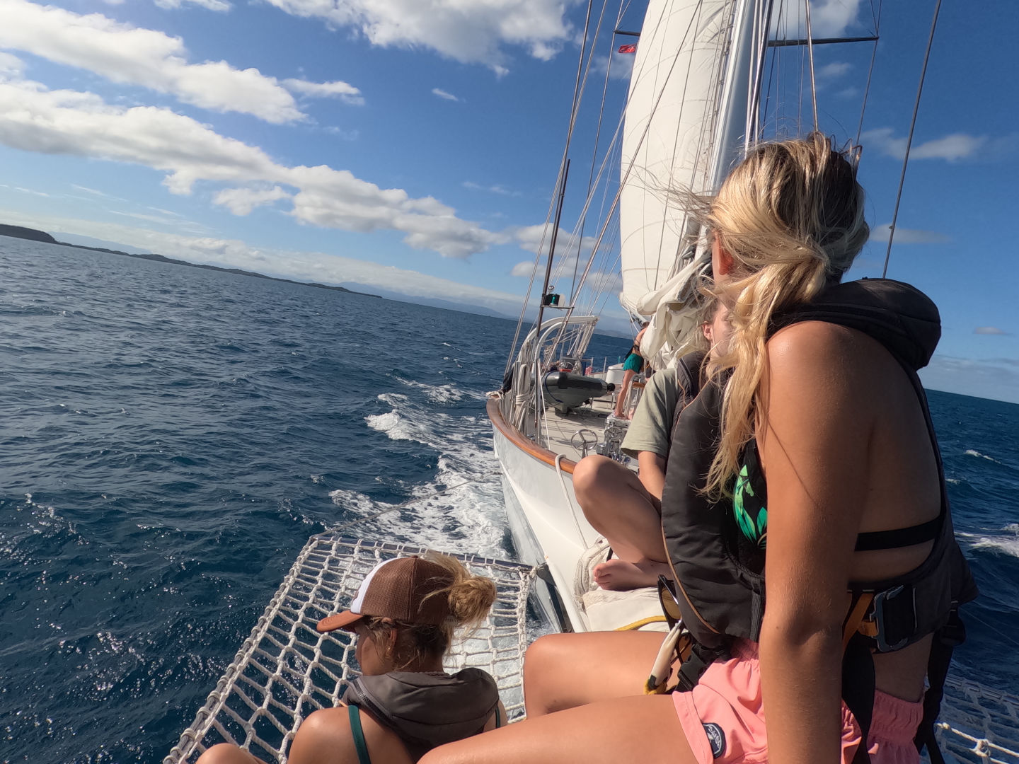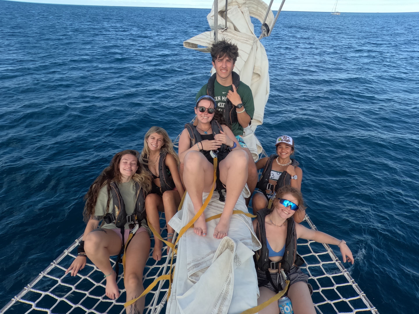 We got a dingy ride back to the ship, and we took ocean showers, then we dried off by sunbathing as we watched the sunset. Heather made one of the best dinners so far, making homemade naan bread and lentil soup. Tonight’s squeeze question was what pet do you have/what is your dream pet to have? Now we’re chilling in the cabin – about to watch a movie (either Hunger Games or How to Train Your Dragon… people are still debating) after we head to bed. Catch ya on the flip! I hope to see everyone soon. Bye!