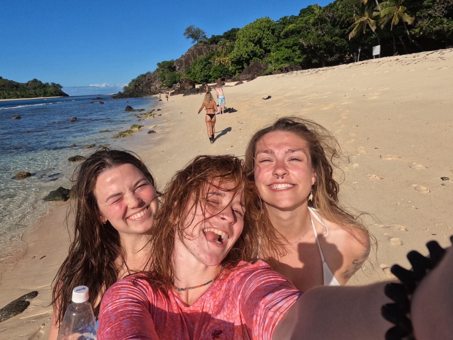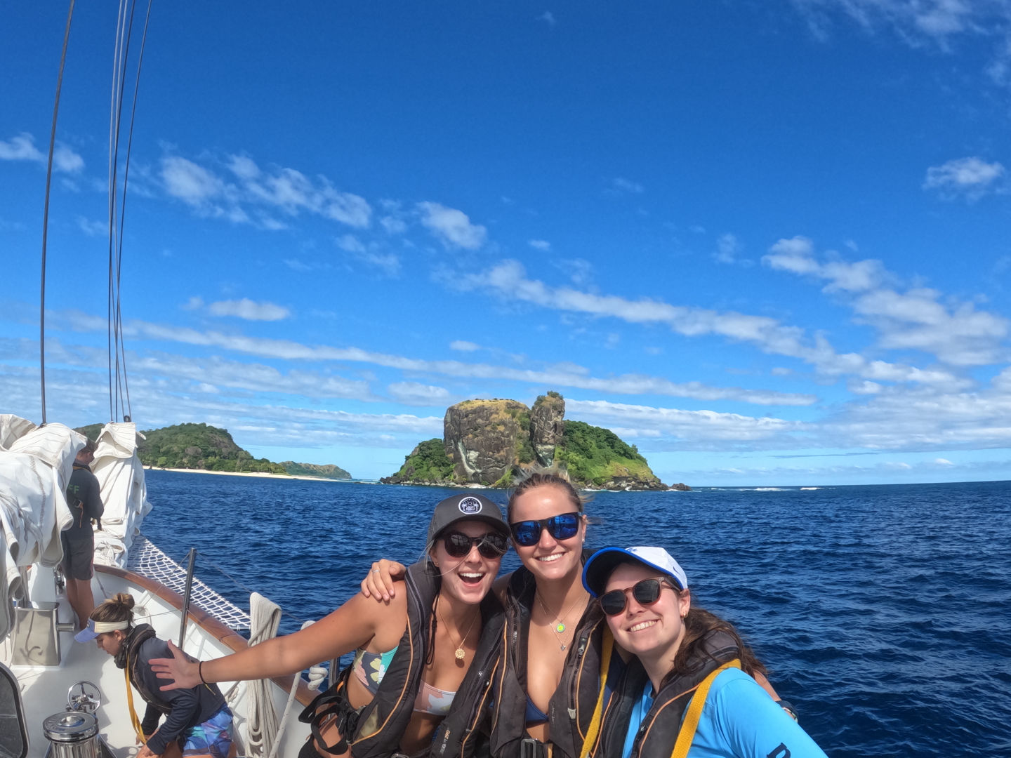 Hi, guys. Cap’n Jack here! Today is day 6 of our voyage. We sailed to Navadra – a small, isolated group of islands off of Fiji, which was our first island hop. On the four-hour boat ride over, some started to feel seasick (aka me). As we arrived, Smash spotted around eight black-tip reef sharks in the water.