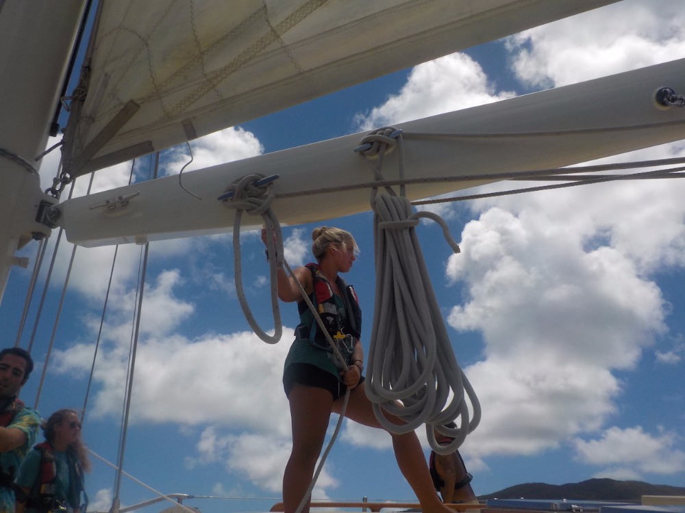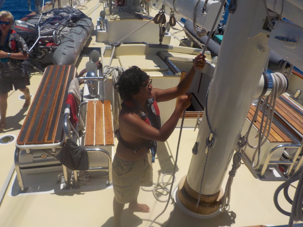 It was a slow start on Argo this morning; everyone is beginning to show the wear of long days of diving and sail training while writing papers late into the night. However, once we got the boat all ready to go and started sail training, everyone woke up and raised five sails in less than eight minutes and had Argo flying through the water. The sail training has gotten everyone excited for classics week; I can almost feel the spray on my face now as we cross the finish line.