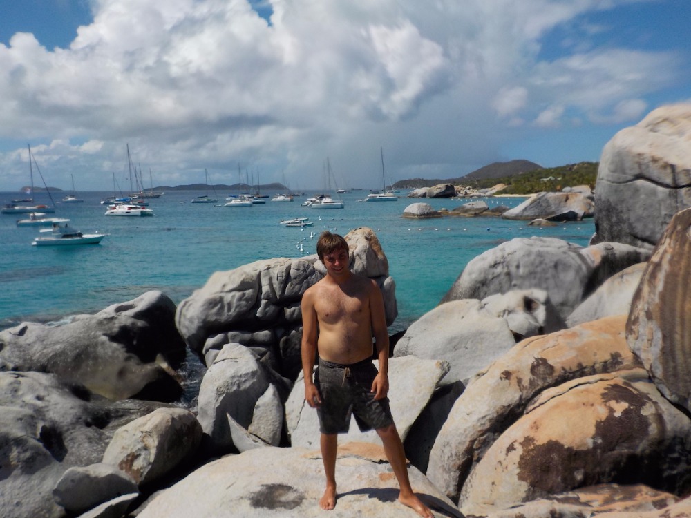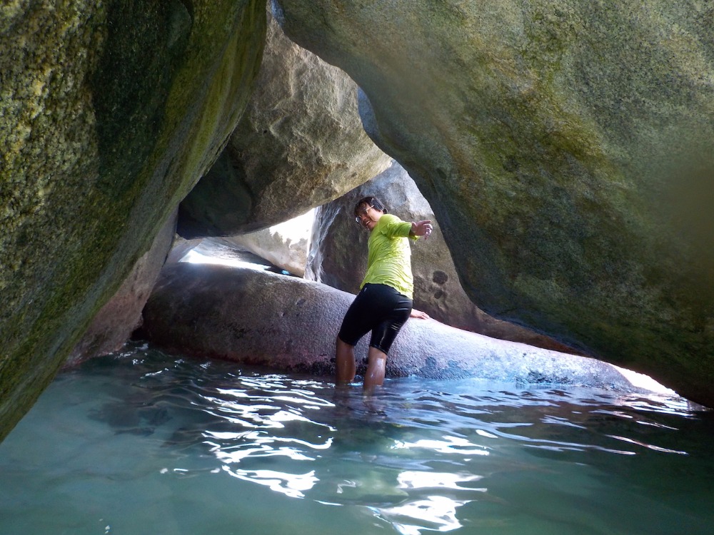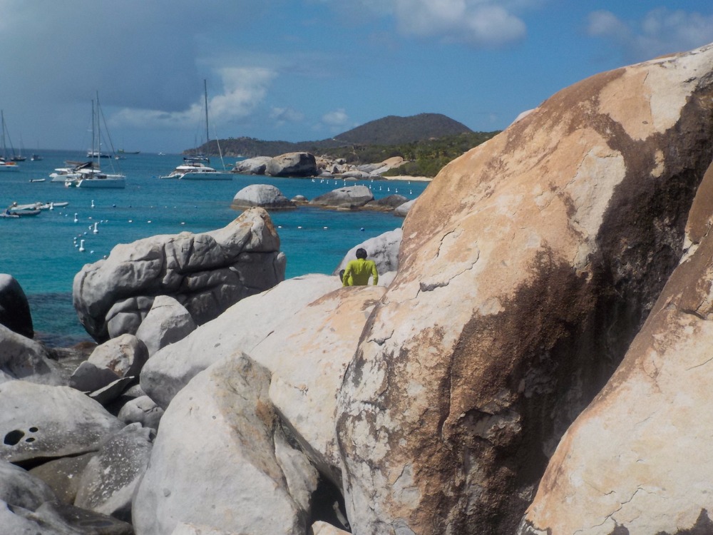 After a couple of hours of sail training, we sailed into the baths for a day of adventuring and exploration in the pools and tumbled boulders. The pools were magnificent, and the boulders easy to climb. There were more caves and crevices than we could explore, though we did our level best. We swam through tunnels, climbed over boulders, and went through caves. We jumped off rocks and chased crabs. The baths offered a plethora of entertainment and even had a small bar to buy food at and rest.