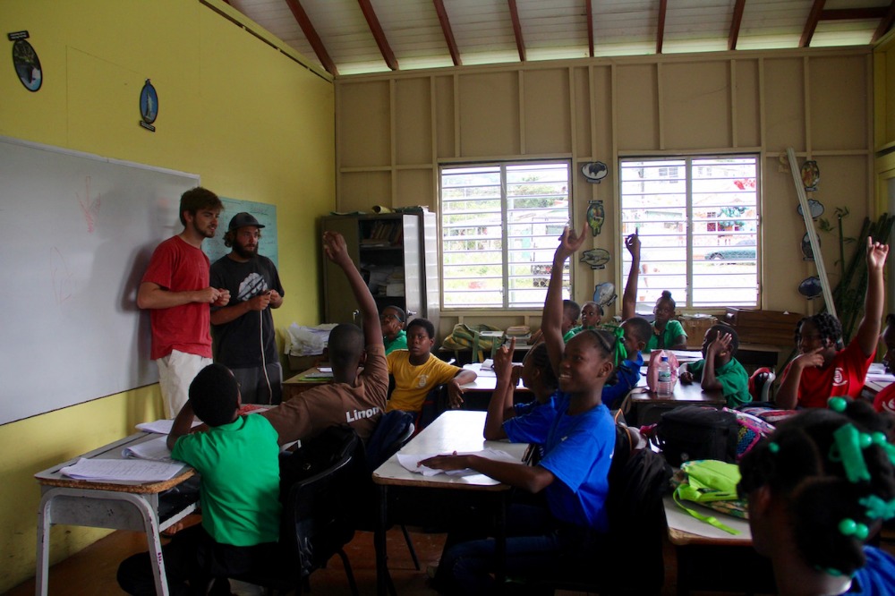 Our students set off today to visit a local middle school here in Dominica. Having crossed an ocean together, the students have become masters of marine and nautical science. They are embarking on the greatest test of their new skills by imparting their knowledge upon these bright young Dominicans. There was knot tying, sailing terminology, and fish identification drawings galore. I hope that we will have inspired both groups of students to further themselves on either side of the educational desk. The trip is coming into the final weeks now, causing everyone to pause and relish the moments they have remaining onboard S/Y Argo. Dominica has been a big hit so far, but we still haven’t even seen all the natural beauty it has yet to offer. Tonight’s squeeze question was “what nonrelative would you turn to if you were in trouble,” It produced a myriad of unexpected responses. Some turned to the sisters of their best friends because they knew of the aloof nature of those best friends. At the same time, other students chose to call upon responsible acquaintances in their time of need because of the fear that their best friend would be a party to the aforementioned trouble. The evening concluded with a showing of “Finding Dory.” There are some MAJOR Pixar fans aboard this boat. The “Frozen” references are becoming too much to bear. It is not even cold outside… Now that it is December, the holiday music has been unleashed upon the salon with fury and zealotry rivaling only Buddy the Elf. Waking up to songs blaring in C major is one of the more unique ways I have been roused out of bed. All is well here in Argo-land! I hope all is well back home.