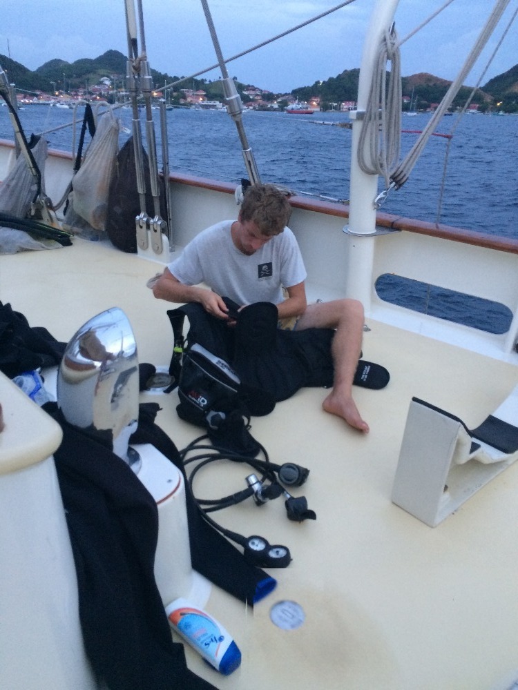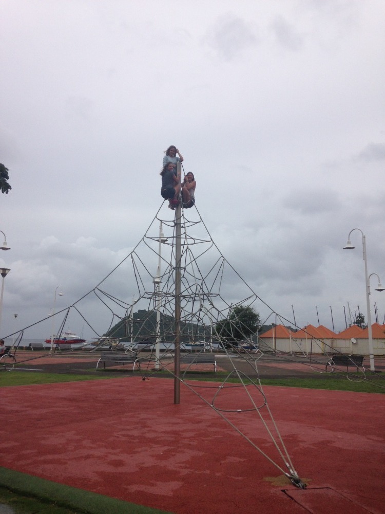 Half of the Argo crew began today by taking their Navigation Master Exam, while the other half went to shore for the first time since arriving in Les Saints. At one o’clock, the groups switched. Congrats to everyone for completing the daunting test. Fingers crossed we all passed! We found the town to be an expensive mix of French and Caribbean culture with beautiful beaches, great cafes, and a lot of tie-dye aesthetics. The crepes were naturally gluten-free to Madi’s excitement, and the playground was pretty bomb. Some people used some shore time to frantically finish picking classes and internships for the next semester. We leave tonight for our last passage to Antigua, where we will finish up our finals and enjoy the island until we depart on the 13th.