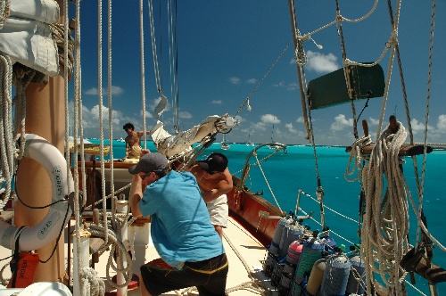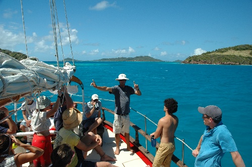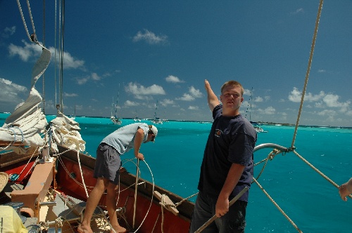Today, we woke up for the 4th day in the middle of the beautiful islands that make up the Tobago Cays. After breakfast, we had an oceanography class, followed by an hour to do what we wished to do in the Cays. Then we had to get ready to do some sailing! But first, we had an open house bid on unclaimed items left on the deck, which Dan had cunningly confiscated. It was very funny! Once everyone was full of mac and cheese, we set sail. It was a great day for sailing, and Ocean Star looked her best sailing out of the lagoon. We did some tacking and put up the fisherman sail, which is always a task, but today, even more so. Stu, while raising the fisherman halyard without enough wraps on the pin, got overwhelmed by the pull of the sail as it caught in the wind and got lifted off his feet! Overall, it was a great day, and we look forward to exploring Mayreau tomorrow.