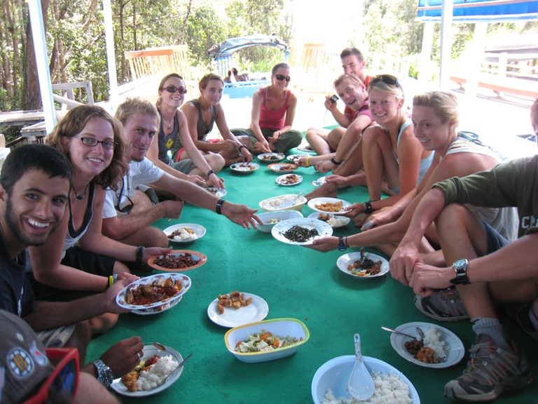 Waking up on Argo, the usual morning yawn, coffee drinkers trying to get their fix. None of that happened today. Everyone was so excited to board our boat; people came up from the companionway, ready for an adventure. And so we were off. A three to four-hour boat ride up the Kumai River would bring us to Orangutan country. The boat ride was amazing. Everything was complimentary. For example, we could have afternoon tea or more food cooked for us than we could imagine. Some people even helped gopher (a slang term used on Argo for cleaning) the plates for our tour guides. The first stop that we had to see the Orangutans was a camp known as Camp Leakey. This camp was made so that orangutans hurt or born in captivity could be let out into the wild and also cared for by Dr.Birute Mary Galdikas. She lived with the orangutans for most of her life, studying and taking care of them. Anyways, on to the fun stuff. We actually saw the orangutans; it was afternoon feeding, and these guys were hungry. One almost tried to bite Xander. He was so hungry, or she was accepting him as a male. It was a great experience, and the funny part is these ones were only the beginning. Once we were finished with this fascinating creature of our past, we went back down the river to anchor up. That’s when Argo bonding started to come out. A taboo game got going, which was by far the funniest game I have played in a while, and then we pigged out again during dinner, the only commotion being the voices of people asking other people for something. Pass me the rice, or pass the chicken thingy. Now, being the skipper of the day, I decided to have some fun with people, so once the bug nets were up, I decided to prank the second boat and tell them that the tour guides said there was some mischief going on at night, and that the staff and I agreed that we should have watches. Everyone was confused, but that confused way that they believed me but were trying to figure out why. Anyway, I had to give into Melissa’s face, which looked as though she might rip me to shreds. All was well, and another successful day on our adventure had been wrapped up. Now, all that was left was the sounds of the jungle and the snores of us.