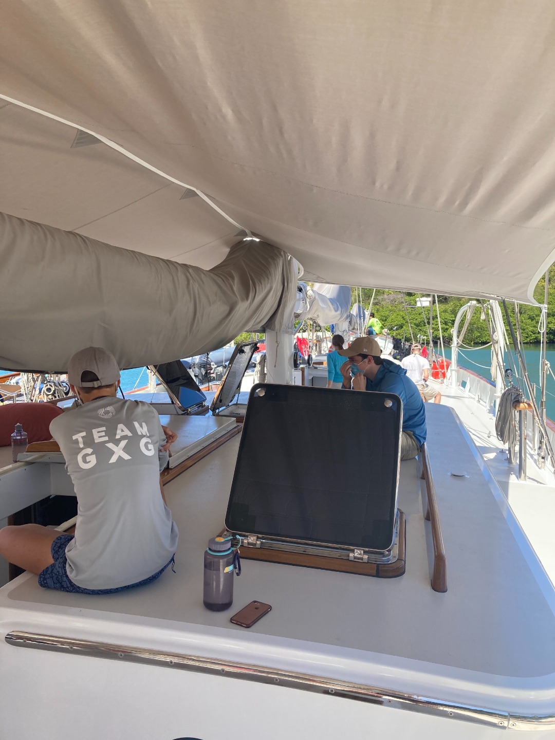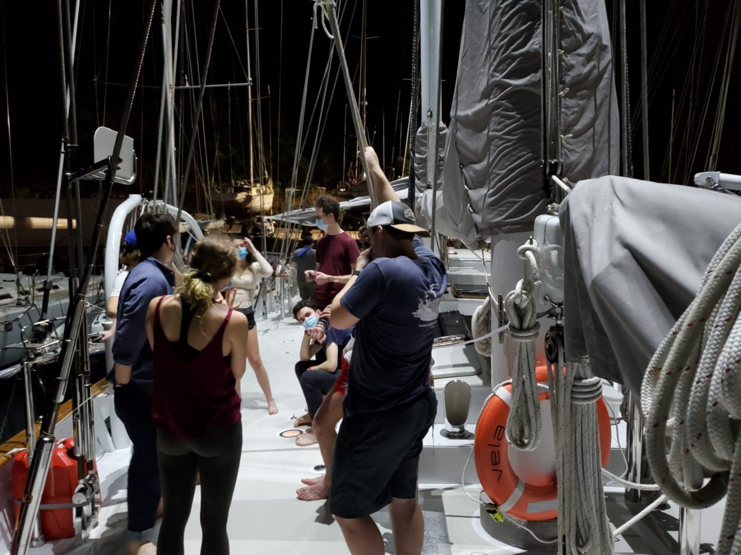 We spent the morning cleaning the boat and getting ready to greet our new shipmates aboard Vela. Our first seven shipmates arrived mid-afternoon and began the onboarding process of temperature taking, disinfecting luggage and shoes, finding their bunks, and meeting their new cabin mates. As the first group checked in with Smash in the chart house and got unpacked and settled in their new home, the final thirteen shipmates arrived together from the airport. It seems that no one had too painful a time getting through customs as all shipmates were on the boat and unpacking by around 5 pm. We had the wonderful smells of Shona cooking vegetable curry as the new group of shipmates got settled. The madness of unpacking continued until well after dinner, but everyone is getting comfortable as they continue to get acquainted with the ship. Tom, Smash, Leoni, Shona, Calum, and I have been excited all day to meet everyone, and it has been wonderful to see everyone chatting and getting to know each other so quickly. We can’t wait to start diving, sailing, and learning with the shipmates, but tonight we will get everyone rested up for their next 90 days aboard Vela.