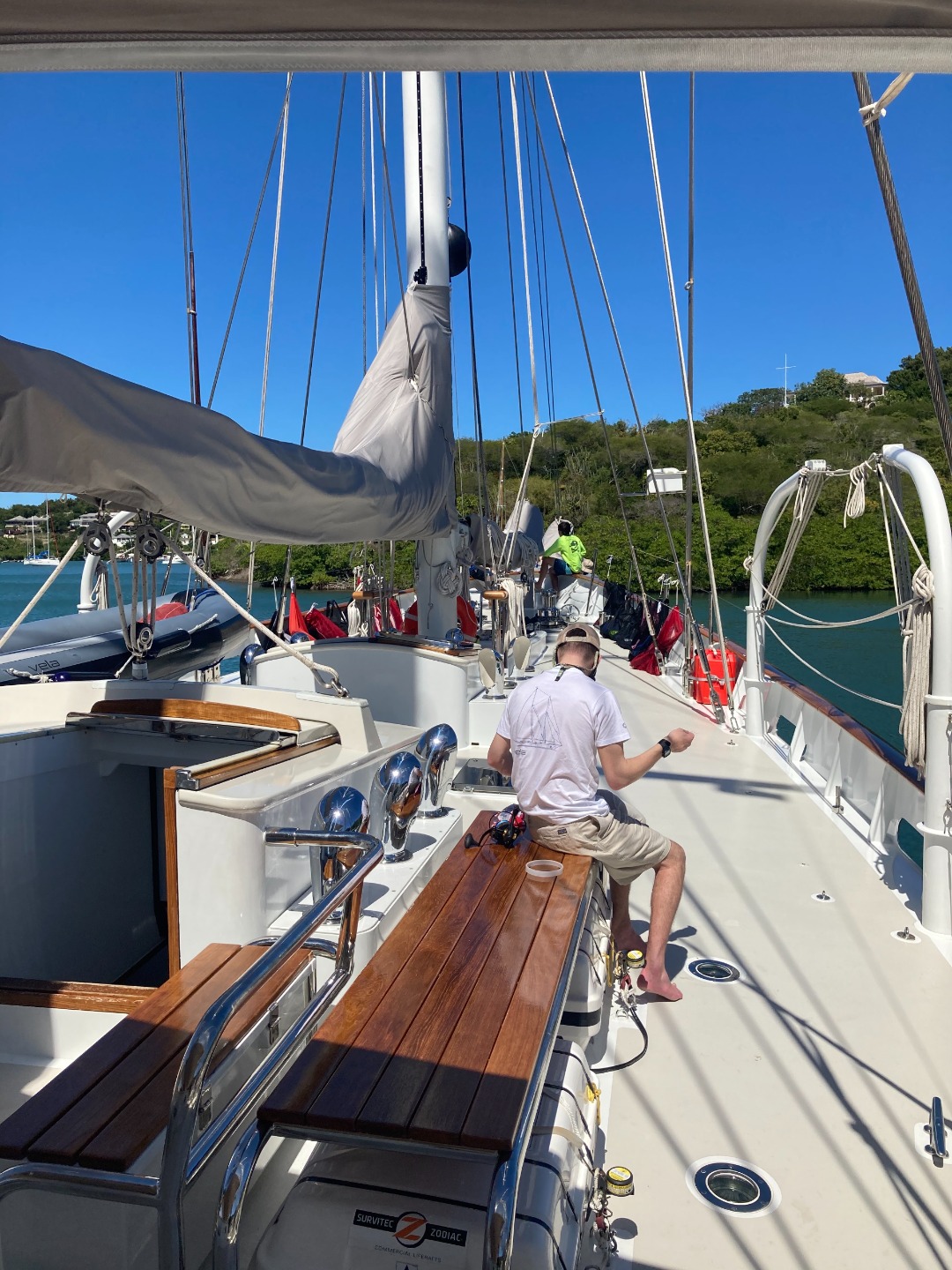 Photo 3: Will getting his fishing gear ready while some of the shipmates enjoy the bowsprit
