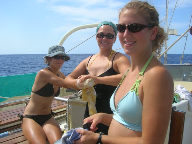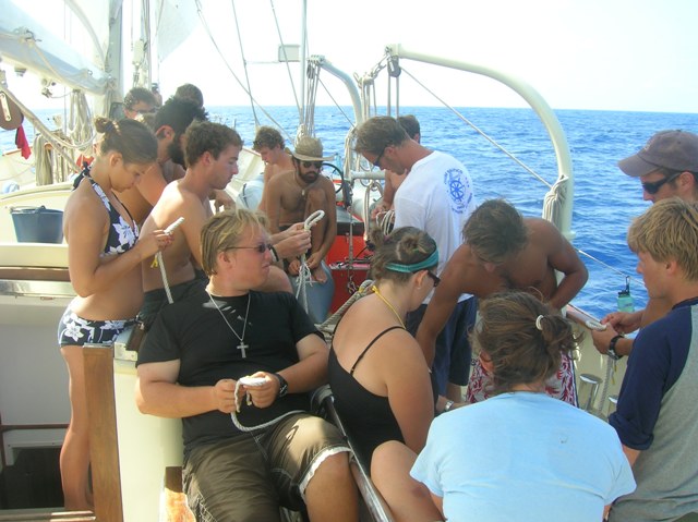 It was another calm day on the Atlantic. The crew enjoyed the warmth and sunshine. It was a day of studying as we prepared for the first Yachtmaster exam. Besides that and a game of “murder,” there wasn’t a whole lot else going on. We stood on our watches and enjoyed plenty of peaceful time of reflection. Some people even took part in their afternoon to practice splicing. It was over as fast as it began, though. Time seems to run together at sea in my mind. It is as if we get in a rhythm and just go with it. Keep on trucking.
