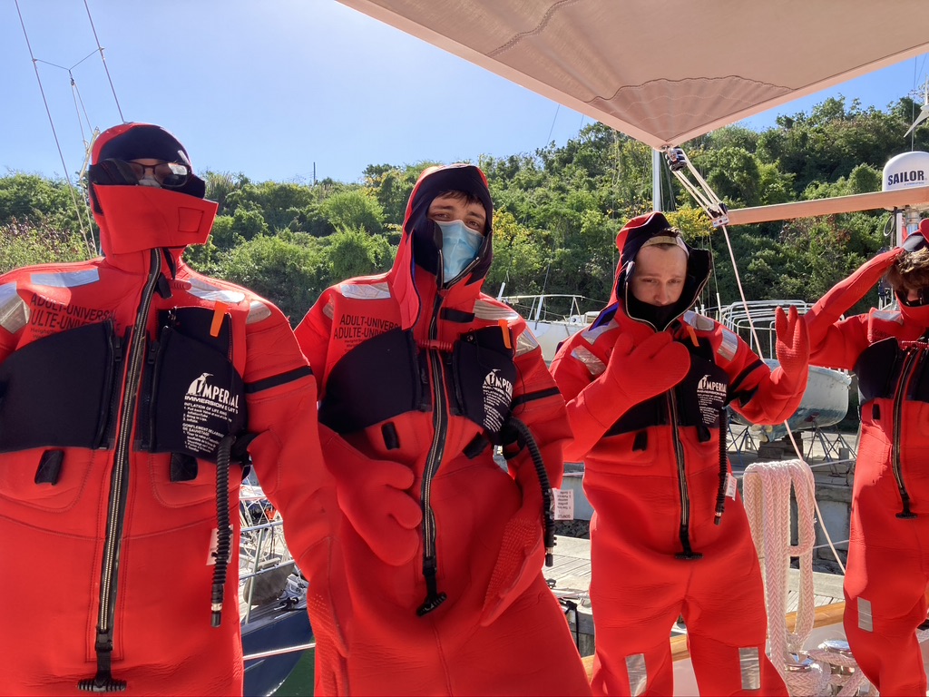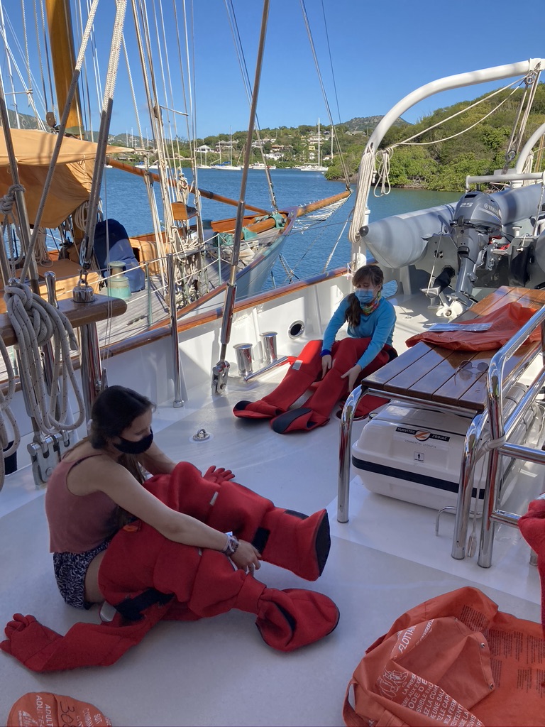 Photo 5: The shipmates getting comfortable in their big orange life jackets