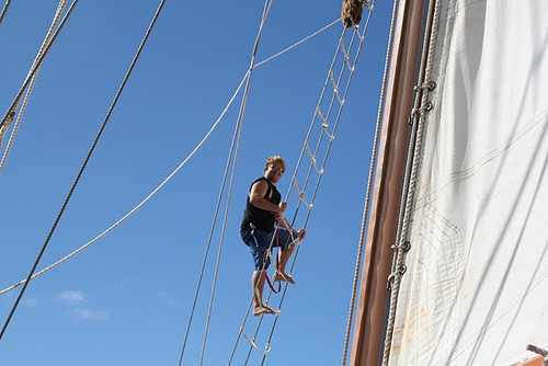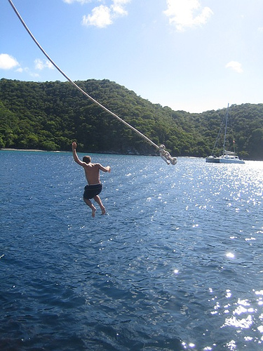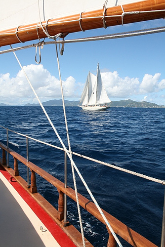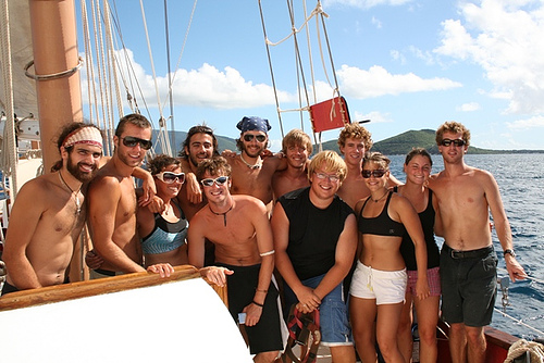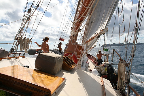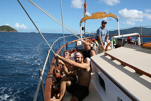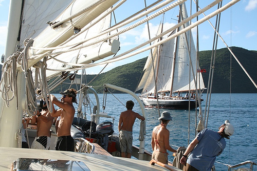 Today was the much anticipated day of sailing alongside Ocean Star in the home waters between Virgin Gorda and Peter Island. We started early with a speed race (unofficial) and then swapped crews to get a taste of our Caribbean counterpart. When we arrived at Peter Island, we set up the boom swing for a bit of water fun. Some of us went snorkeling near shore as well and then settled in for a nice Mexican dinner to conclude another good day in the Caribbean.