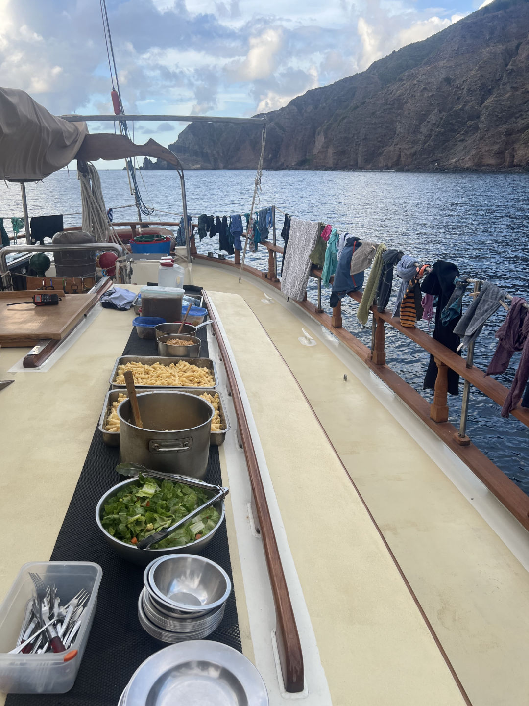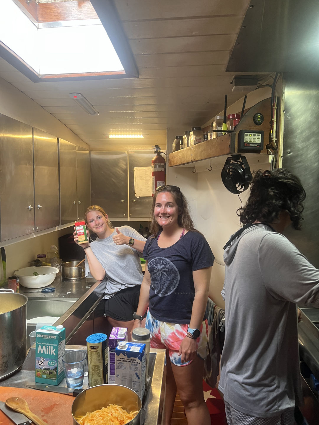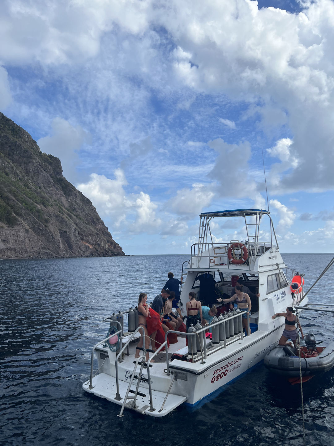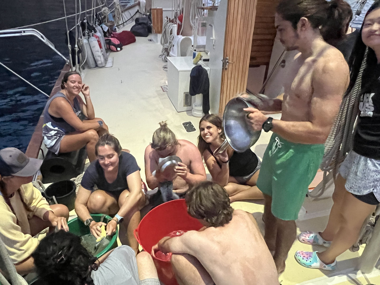 Today was a super cool day! It started with an extra early 6:30 am wake-up call. Some were more tired than others as we rotated through anchor watch overnight. For breakfast, we had cereal and cantaloupe. A local dive shop is known as “Sea Saba” arrived at Ocean Star at 8:30, and the first group of divers headed off. Our first dive of the day was a deep dive. This was our first of 5 dives to complete our Advanced Open Water dive certification. Despite everyone being slightly nervous, we dove to roughly 83 feet. We explored some coral and saw how red light disappears as you dive down to further depths, as Steph demonstrated with container lids borrowed from the galley. Our second dive was my favorite of the day. It was our “fish ID” dive. We descended into what was essentially a mountain of coral. There were sea turtles, giant lobsters, stingrays, eels, and thousands of fish. It may have been one of the coolest things I’ve ever seen! For this dive, our maximum depth was 70 feet. After our second dive was over, we headed back to Ocean Star and had some ocean showers, and ate lentil soup for lunch. While the second dive group went out, the rest of us watched an Emergency First Responder video and answered some questions regarding CPR and first aid. We then had some free time and ate mac n’ cheese and chicken for dinner. Overall, today was a super awesome day! Everyone here is getting along really well, and Smash, Amanda, Steph, and Drew are the best leaders!