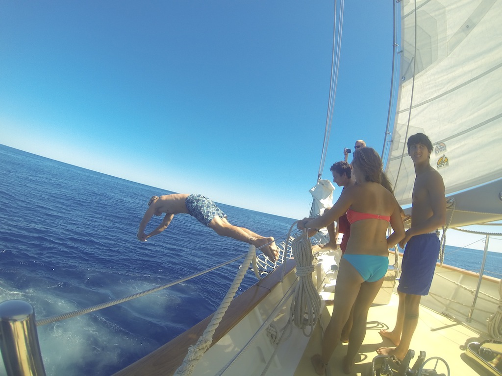 Sailing for days at a time out on the open ocean is an experience I will soon not forget. Looking out at vast blue waters that stretch all the way out to the horizon, feeling and hearing the crashing waves against Argo, and tasting the salty brine truly allows you to reflect and think from a sailor’s perspective as you realize how small you truly are out in the middle of the Pacific Ocean. But it is something that my fellow shipmates and I have come to recognize as daily life during the amazing course of our Sea|mester. We take turns with our watch teams making sure that Argo is running smoothly by performing boat checks by the hour, sitting out on the bow searching the horizon for any boat traffic, raising and lowering sails depending on the wind, and helming the 112-foot schooner we call home using a compass to guide us on a course set for Mackay, Australia. Usually, the waves are quite rough, pitching Argo back and forth, making it hard to maintain balance and sometimes sleep. But today was a special day in my eyes. The waters were flat and glassy, and the winds were almost non-existent. Normally, we take showers on deck with a hose while the boat is sailing along, but Captain Sam decided that the conditions were right for our first open ocean shower. We turned off the motor, changed into our swimsuits, and were warned about sharks before we jumped (while others did skillful flips and gainers) off the bow. There’s something almost scary yet exhilarating about jumping off a boat into waters that extend to depths of 4,000 meters that animals like sharks, whales, dolphins, and fish call their home and their feeding grounds. Needless to say, it was one of the quickest shower sessions we have had, but memorable nonetheless. The rest of the day proceeded with a class about marine parks and another on the history of leadership. Then Nick and I gave our destination presentation on the Great Barrier Reef, where we will soon be scuba diving and snorkeling. Then, the scheduling committee planned out the next week’s activities and final classes and exams as we traveled from place to place in Australia. Sadly only 15 days remain of our amazing voyage. Still, by the end, we will have traveled 4,000 nautical miles throughout the South Pacific with many skills acquired, fond memories, Nat-Geo quality pictures, and stories to share with our loved ones.