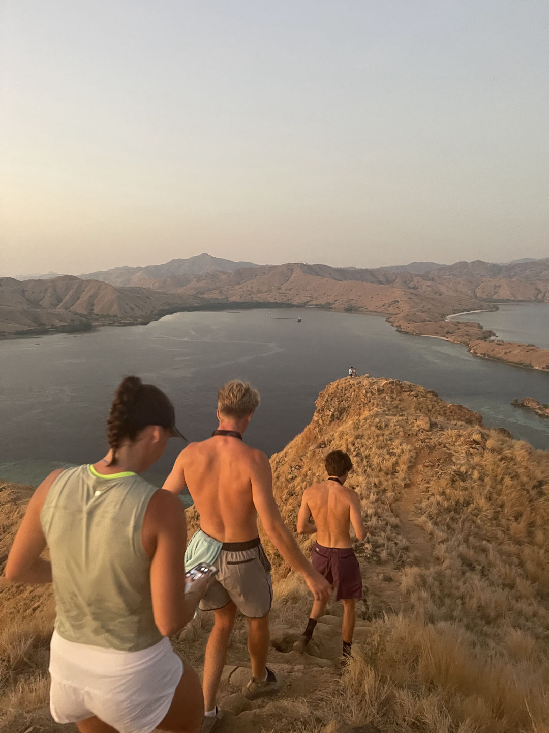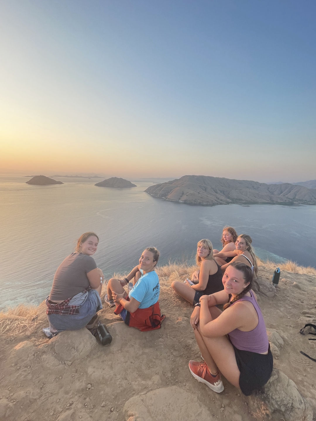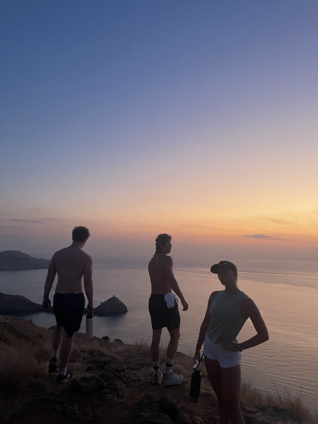 Although we have had a good bit of early mornings as we’ve frolicked around Indonesia, none were as early (or maybe as worth it) as the 4:50 am wake-up for the sunrise hike up Lawa Darat island. Allie, whom I share a cabin with, thought she was awoken by Tom and Smash sticking their fingers in her ears, but alas, they only gave her their classic head rubs. Everyone was shuttled onto the beach, and off they went with the guides for protection from possible Komodo Dragons, up and over the island for sunrise at 5:49. While hiking, they saw heaps of deer, which apparently scared the crap out of Kasey, who we learned today is afraid of deer. Kasey also told the guides that she was from Singapore, which he responded to by saying that the last (and only other) person he knew from Singapore who did this hike had gotten eaten by a Komodo Dragon, and all they found that was left of him was his shirt. Ben’s response to that was, “Two for two?”. But luckily, we have Kasey safe and sound on board, not consumed by a dragon. All the while, a few of us were back on board, getting breakfast ready and awaiting the group’s arrival at the beach to bring them back to Vela.