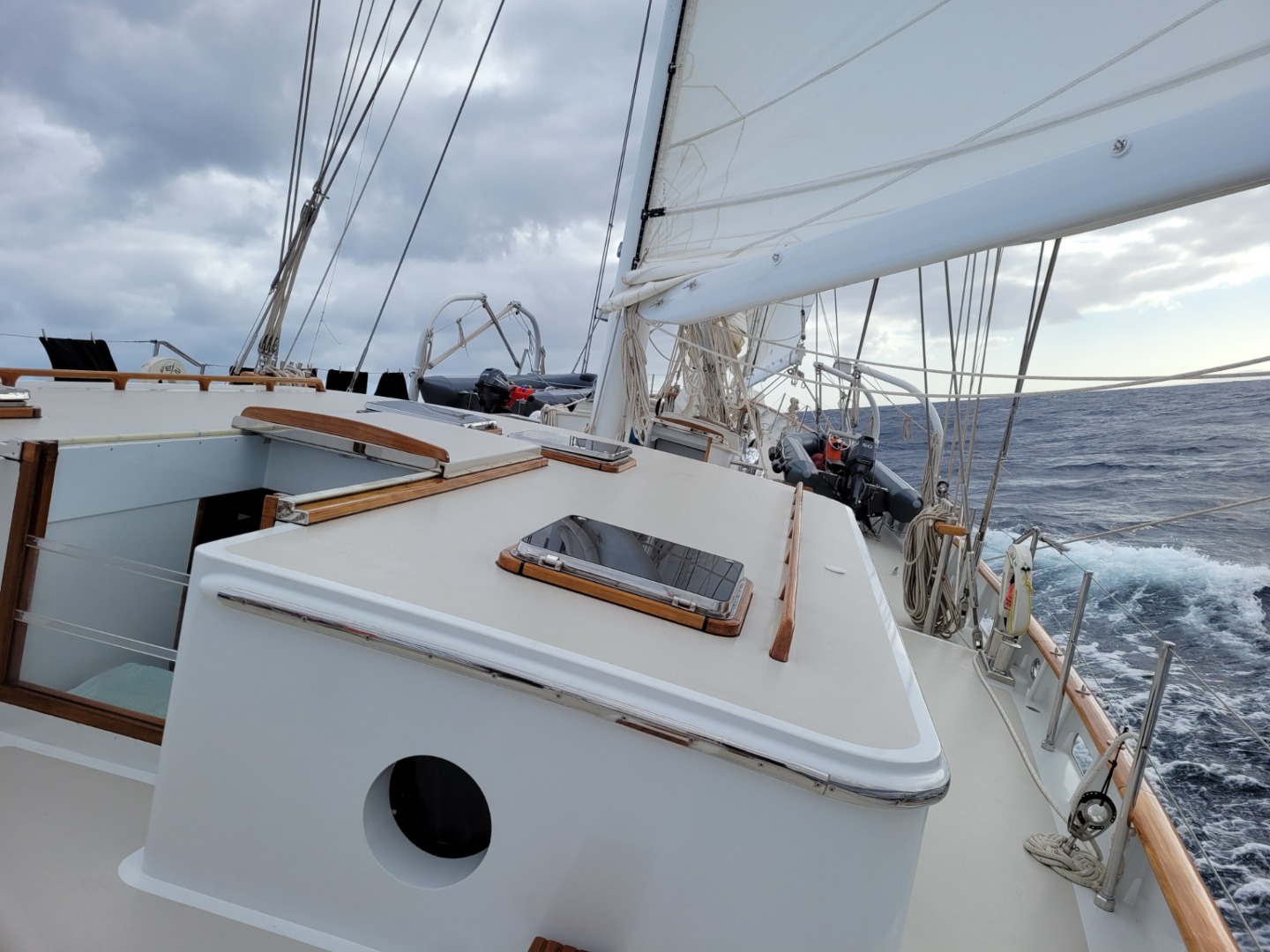 Booms topped, lines run, and sails flaked