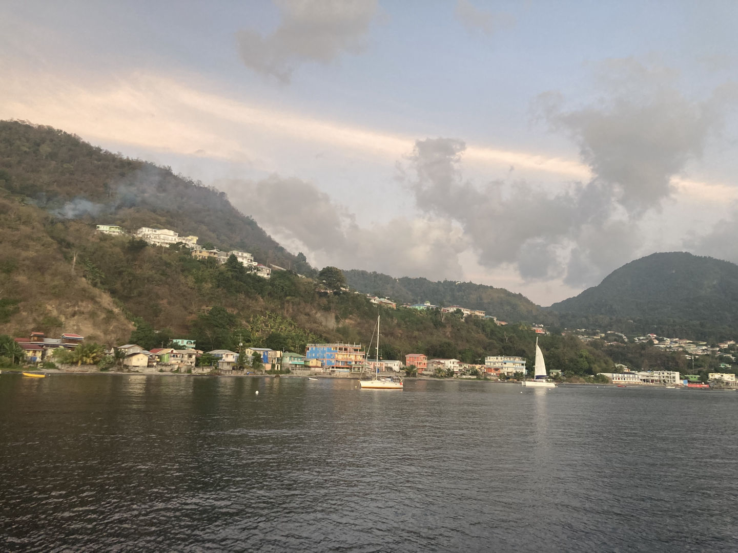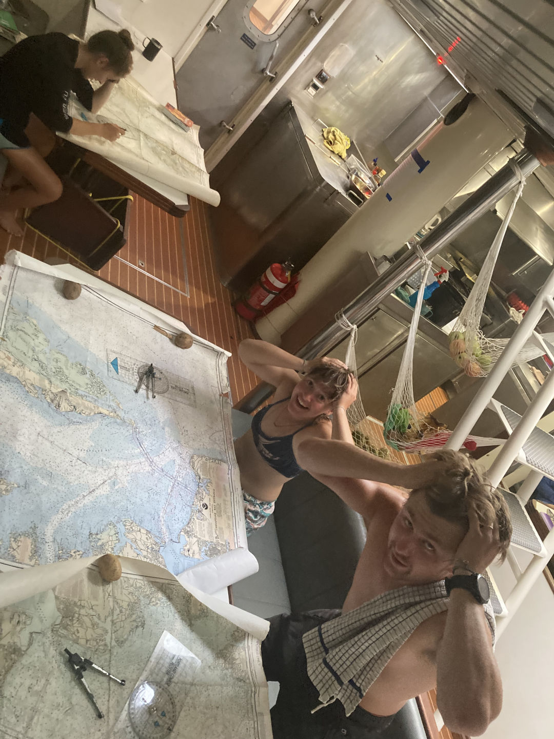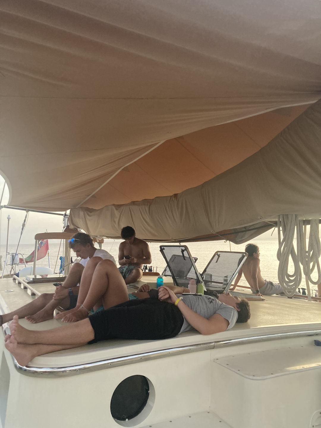 We arrived safely and smoothly in Dominica this morning, thanks to our wonderful student leaders Emma, Mg, Katie, and Will. The rest of the day was taken up by Nav master exams, which most of the group completed today and, from what I heard, even enjoyed, thanks to a lot of preparation with elder Gabe and Claire. Other than that, it was a pretty chilled day (not temperature-wise), and people used the downtime to work, relax and watch the coronation of King Charles. Thankfully we weren’t sprung with any drowning scenarios, but our quadrat did go under, and Amanda Shu and Ben dove down to get it – thanks, guys :). This was due to unfortunate circumstances with several stinging animals in the water, which were also the cause of lots of funny exits out of the water – shoutout to Nolan and Elene. The food was a highlight again, with pizza for lunch and chicken tenders for dinner, as well as Dutch apple pancakes for dessert – thank you, Max, Ellie, and Claire. As we sat down together for dinner, it seemed like there were big bonfires on the shore behind us, but judging by the sirens, it might have been more dramatic than that (no worries, they were put out by the end of dinner). Today’s squeeze question was: in what way did this trip change you? Responses were very positive. This journey has seemingly facilitated a lot of personal growth, with people saying they became more resilient, relaxed, and confident in themselves. It was very nice to hear and is definitely something I would say for myself as well. It’s been great!