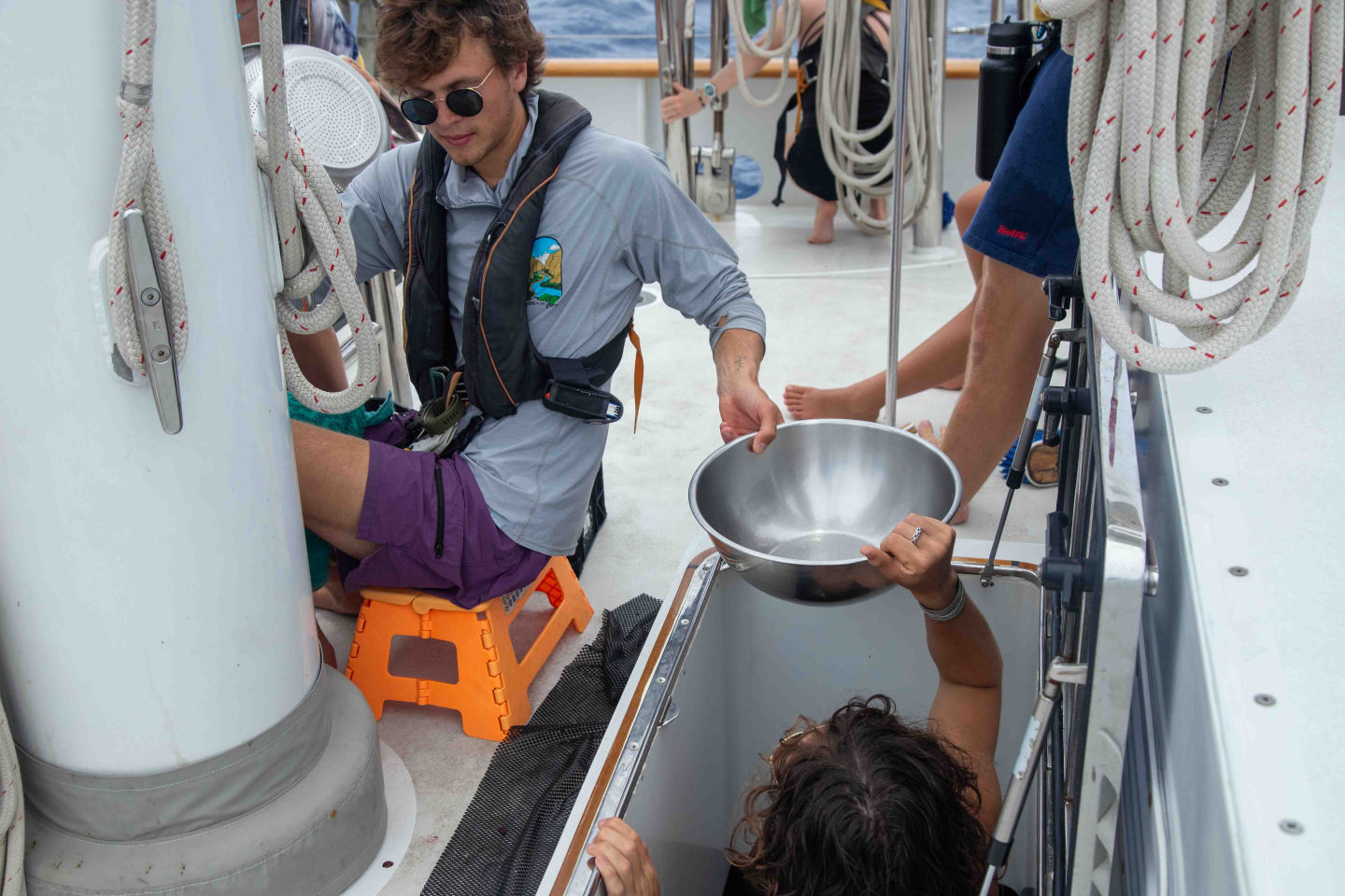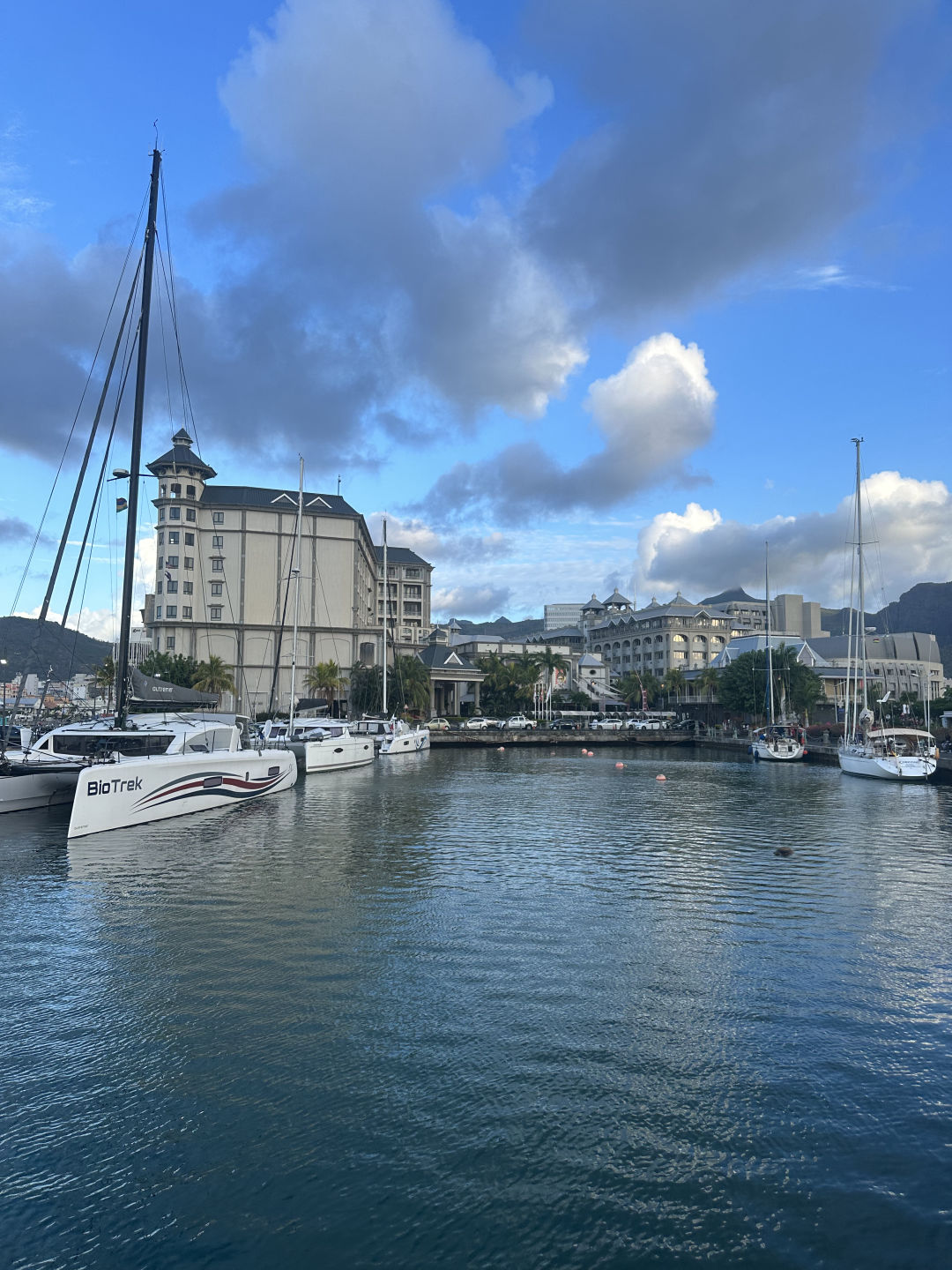 Very similar to yesterday, today started with earlier wake-ups for those who still needed to dive while my group got to sleep an extra half hour. My alarm was set, and I was ready sharply at 7 to finish off wake-ups until Jake came stopping through up forward, stealing my thunder and loudly waking up the group. As everyone enjoyed the quiche prepared by Ayden, the dive group was off to finish the last bit of diving for this trip. Lucia, Zoe, Siena, Wes, Finn, Daniel, Cristian, Audrey, Lina, and I mentally prepared to spend the day working through the nav practice exam. We heard not-so-great rumors from the group yesterday. To our surprise, it didn’t take as long as we expected, but there’s definitely some review that needs to be done before the real exam. Once we finished, food and ice cream were a necessity to refuel. Wes, Siena, and I grabbed some dumplings, and although it was pouring, the ice cream was so worth it. Siena and I then tried to get some of our essays done at a coffee shop but got caught up doing crossword puzzles. It was such a relaxing afternoon seeing the double rainbow after the rain as we were greeted by the divers coming back. They seemed to have an amazing dive, seeing so much marine life, from eels to turtles to nudibranchs. After Jackson’s imaginary friend “Presley” got them all into a nice resort, they enjoyed a fancy beachy lunch before heading back to the boat for another of Ayden’s meals. We all did our part to clean up efficiently so we could all grab some more ice cream as motivation to finish our Marine Bio essays due tonight. Our clean laundry was then brought back to the boat, and we’re thrilled to have fresh-smelling clothes again. We’re all soaking in our last few days enjoying Mauritius before our next passage and excited to set sail again!