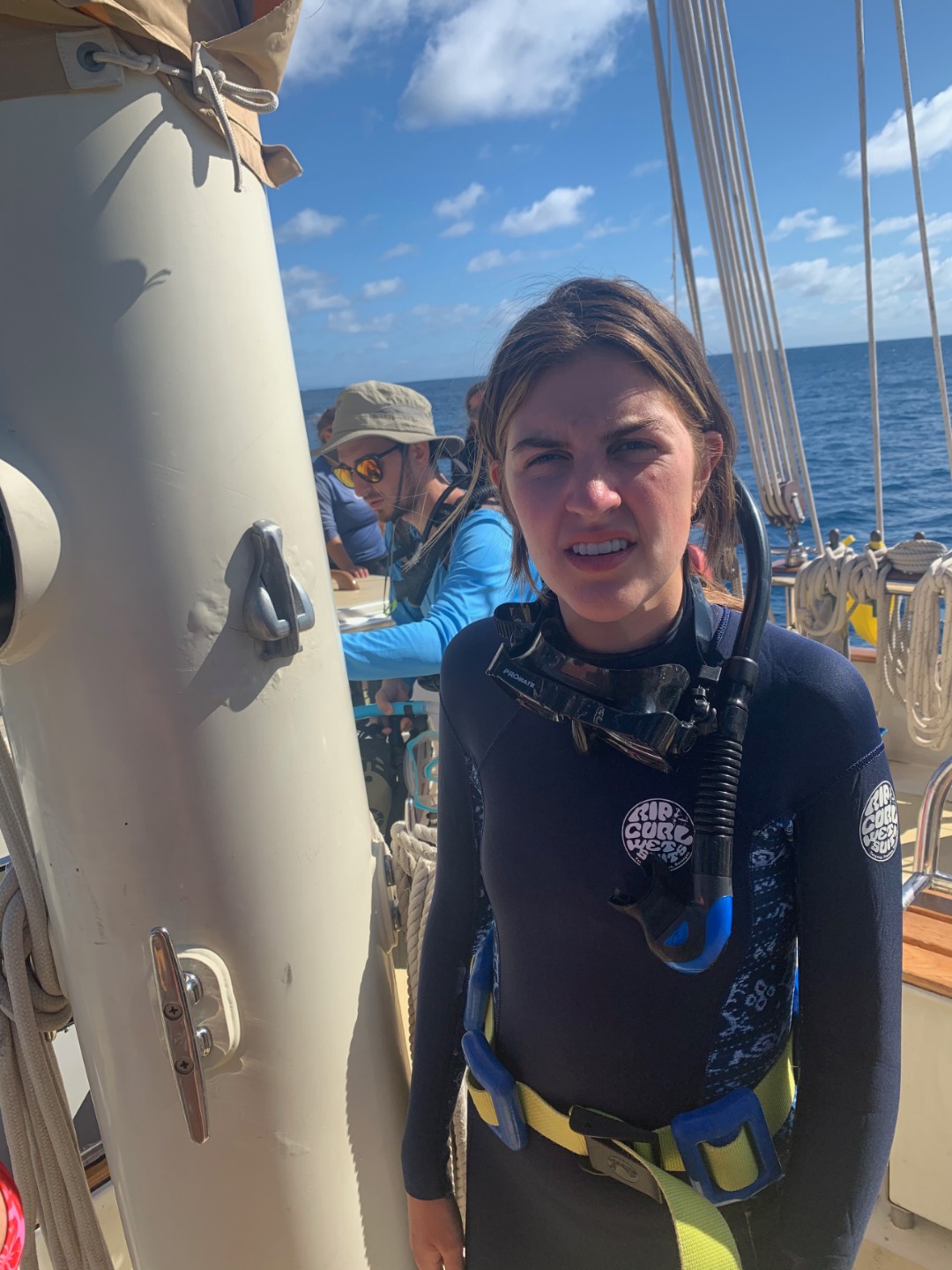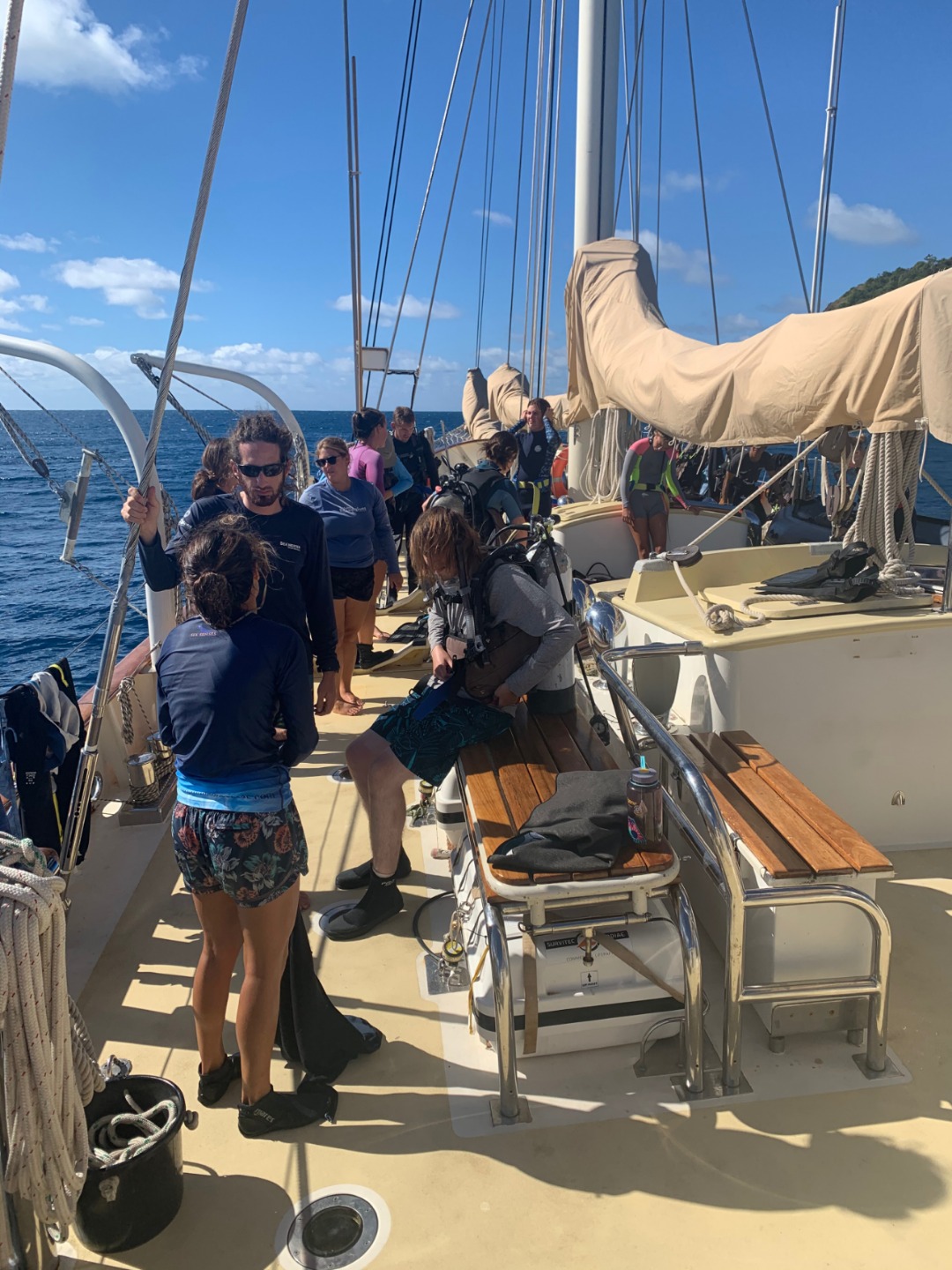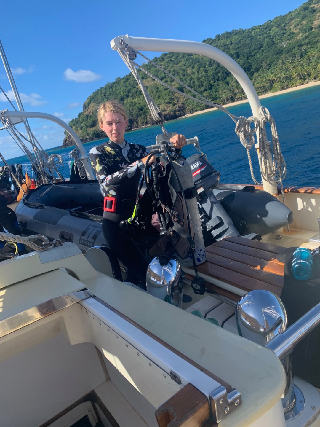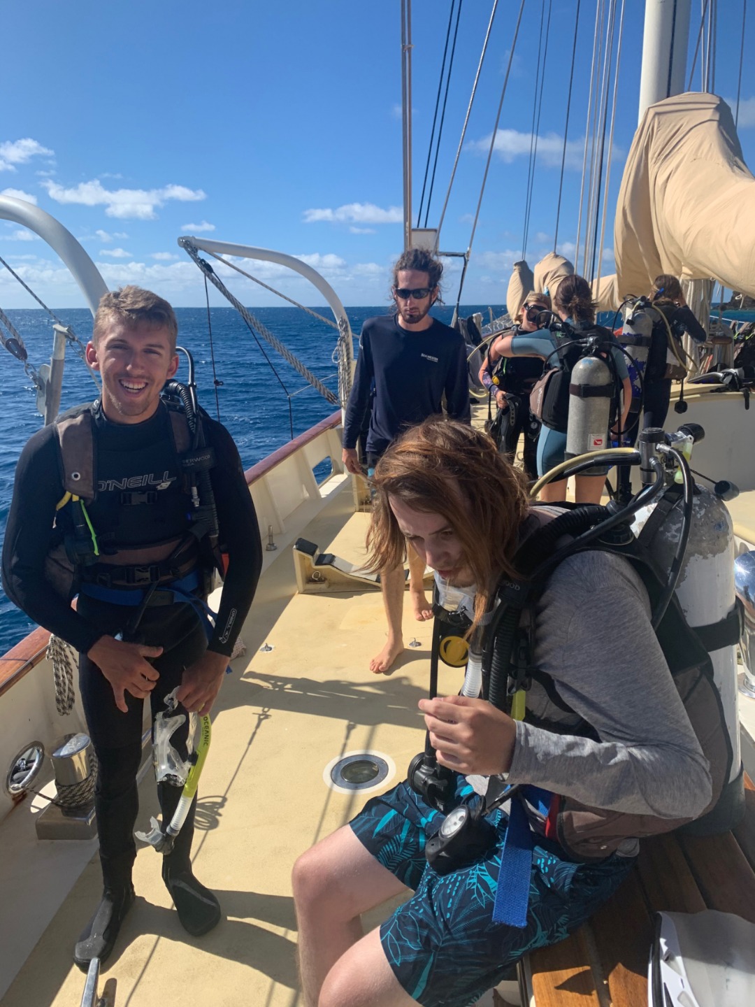 This morning started similarly to when I was skipper last. I once again got to wake up everyone early. I think the staff members are giving me a present by letting me wake everyone up at 6:30. After I got everyone out of bed, we ate some banana pancakes made by Caleigh, which were good, and raised the anchor to set sail to go diving. Everyone was going to be able to get two fun dives in on the fourth largest barrier reef in the world, The Great Astrolabe Reef. While everyone was getting their gear set up, I decided to work on my project as skipper for the day: get a picture of everyone while they were not expecting it. Ive titled my portfolio Everyones Face When They Hear Me Say Their Name. As you can see, there were many scowls as they heard my voice and turned to look at me only to be met with my camera. Then the first two groups hopped in the water to start their dive. As they were getting in, a message came around, ushering my group into the water. I hurriedly got my gear together with my group; Pierce, Jennifer, Caroline, and Gabe. We swam over to the dive site, Vanua Kula Island, and descended upon giant coral heads and forests of branching coral. It was so fun honing our craft, floating up and down and all around the coral. There were jungles of Christmas Tree Slugs, courts of Royal Angelfish, and many more species of fish that I couldnt identify. To quote my dive leader and truddy partner, Gabe, it was like a playground underwater, and it was like taking a bath in an aquarium. There were even whispers flying around the boat that a couple of groups had seen a shark. We surfaced and swam back to Argo to have some naan and rice and other things for lunch. What were those other things? Naan of your business. Once we finished cleaning up from lunch, we took a vote to go back to the place we dove before, the known, or go try out a new spot, the unknown. In the spirit of the day, we chose to enter the unknown. We loaded up the dang-dangs with our scuba gear and disembarked from Argo while it was not anchored to the ground. We went over to our dive site, Usbourne Passage, which turned out to be a giant wall of coral that went from the surface to over 60 feet deep. To use Gabes wording once again, it was epic, but not exactly epic, but epic we swam next to a huge wall of coral with many different fish for around 40 minutes before heading back to the surface and catching a dinghy ride back to Argo. I dont really know what happened afterward because I was tired and passed out until dinnertime. We ate dinner, anchored back in our anchorage, and did our nightly squeeze. And now we are setting up for Moana movie night.
