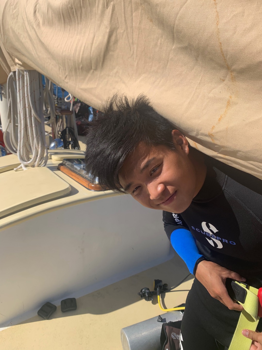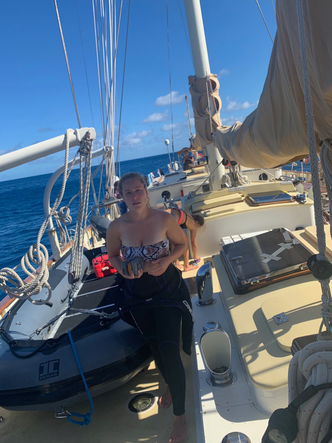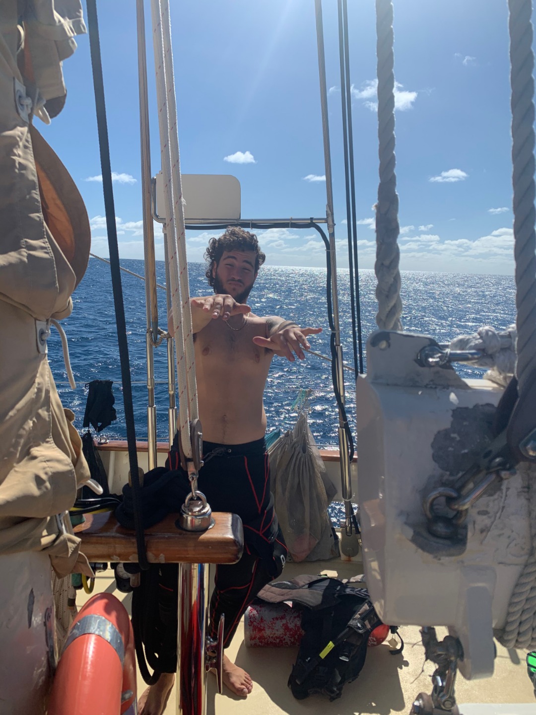 This morning started similarly to when I was skipper last. I once again got to wake up everyone early. I think the staff members are giving me a present by letting me wake everyone up at 6:30. After I got everyone out of bed, we ate some banana pancakes made by Caleigh, which were good, and raised the anchor to set sail to go diving. Everyone was going to be able to get two fun dives in on the fourth largest barrier reef in the world, The Great Astrolabe Reef. While everyone was getting their gear set up, I decided to work on my project as skipper for the day: get a picture of everyone while they were not expecting it. Ive titled my portfolio Everyones Face When They Hear Me Say Their Name. As you can see, there were many scowls as they heard my voice and turned to look at me only to be met with my camera. Then the first two groups hopped in the water to start their dive. As they were getting in, a message came around, ushering my group into the water. I hurriedly got my gear together with my group; Pierce, Jennifer, Caroline, and Gabe. We swam over to the dive site, Vanua Kula Island, and descended upon giant coral heads and forests of branching coral. It was so fun honing our craft, floating up and down and all around the coral. There were jungles of Christmas Tree Slugs, courts of Royal Angelfish, and many more species of fish that I couldnt identify. To quote my dive leader and truddy partner, Gabe, it was like a playground underwater, and it was like taking a bath in an aquarium. There were even whispers flying around the boat that a couple of groups had seen a shark. We surfaced and swam back to Argo to have some naan and rice and other things for lunch. What were those other things? Naan of your business. Once we finished cleaning up from lunch, we took a vote to go back to the place we dove before, the known, or go try out a new spot, the unknown. In the spirit of the day, we chose to enter the unknown. We loaded up the dang-dangs with our scuba gear and disembarked from Argo while it was not anchored to the ground. We went over to our dive site, Usbourne Passage, which turned out to be a giant wall of coral that went from the surface to over 60 feet deep. To use Gabes wording once again, it was epic, but not exactly epic, but epic we swam next to a huge wall of coral with many different fish for around 40 minutes before heading back to the surface and catching a dinghy ride back to Argo. I dont really know what happened afterward because I was tired and passed out until dinnertime. We ate dinner, anchored back in our anchorage, and did our nightly squeeze. And now we are setting up for Moana movie night.