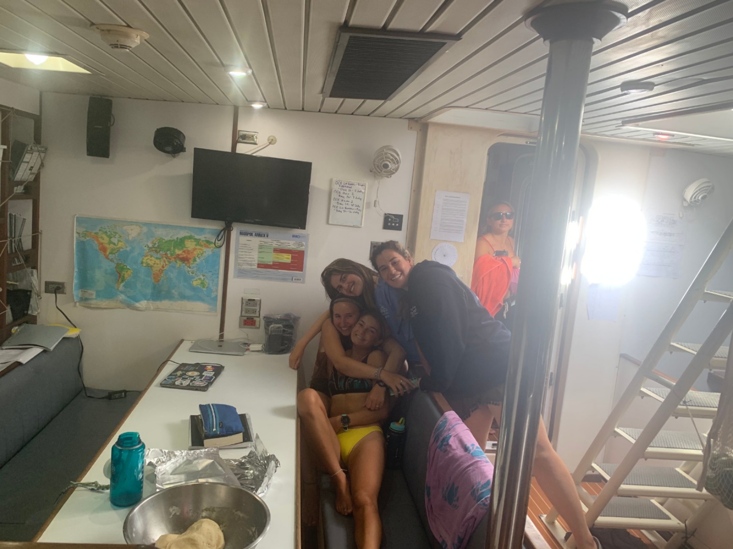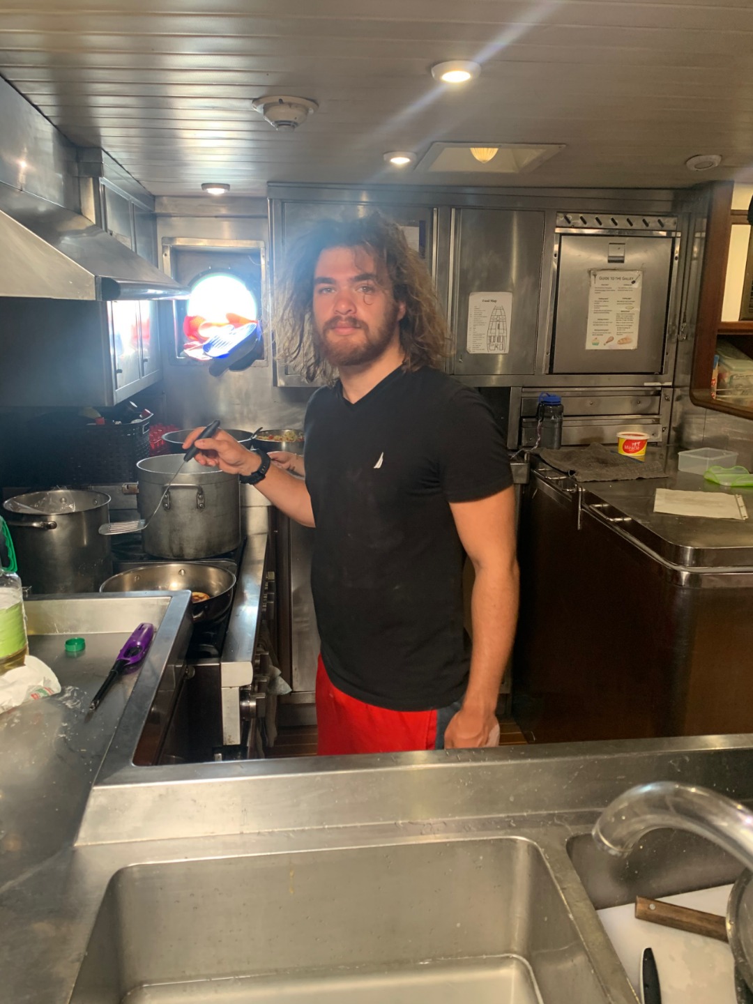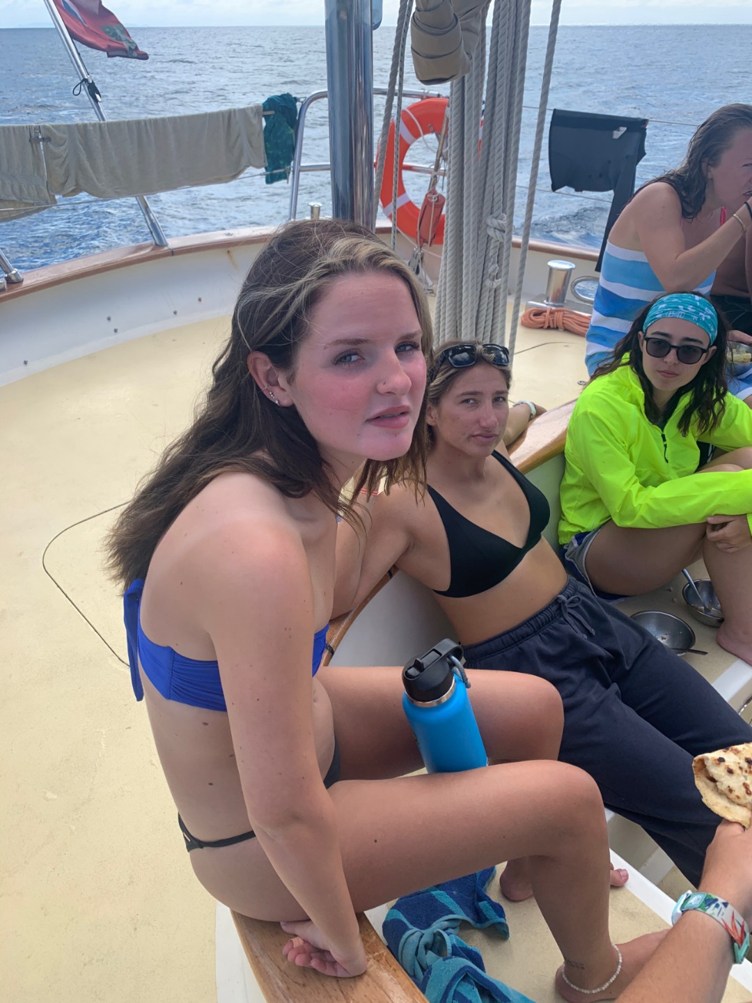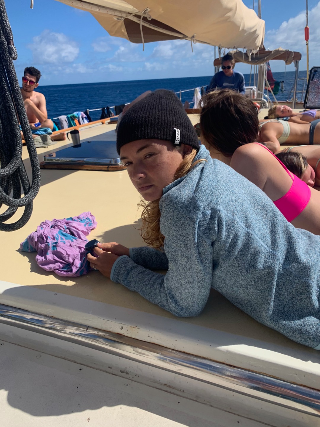 This morning started similarly to when I was skipper last. I once again got to wake up everyone early. I think the staff members are giving me a present by letting me wake everyone up at 6:30. After I got everyone out of bed, we ate some banana pancakes made by Caleigh, which were good, and raised the anchor to set sail to go diving. Everyone was going to be able to get two fun dives in on the fourth largest barrier reef in the world, The Great Astrolabe Reef. While everyone was getting their gear set up, I decided to work on my project as skipper for the day: get a picture of everyone while they were not expecting it. Ive titled my portfolio Everyones Face When They Hear Me Say Their Name. As you can see, there were many scowls as they heard my voice and turned to look at me only to be met with my camera. Then the first two groups hopped in the water to start their dive. As they were getting in, a message came around, ushering my group into the water. I hurriedly got my gear together with my group; Pierce, Jennifer, Caroline, and Gabe. We swam over to the dive site, Vanua Kula Island, and descended upon giant coral heads and forests of branching coral. It was so fun honing our craft, floating up and down and all around the coral. There were jungles of Christmas Tree Slugs, courts of Royal Angelfish, and many more species of fish that I couldnt identify. To quote my dive leader and truddy partner, Gabe, it was like a playground underwater, and it was like taking a bath in an aquarium. There were even whispers flying around the boat that a couple of groups had seen a shark. We surfaced and swam back to Argo to have some naan and rice and other things for lunch. What were those other things? Naan of your business. Once we finished cleaning up from lunch, we took a vote to go back to the place we dove before, the known, or go try out a new spot, the unknown. In the spirit of the day, we chose to enter the unknown. We loaded up the dang-dangs with our scuba gear and disembarked from Argo while it was not anchored to the ground. We went over to our dive site, Usbourne Passage, which turned out to be a giant wall of coral that went from the surface to over 60 feet deep. To use Gabes wording once again, it was epic, but not exactly epic, but epic we swam next to a huge wall of coral with many different fish for around 40 minutes before heading back to the surface and catching a dinghy ride back to Argo. I dont really know what happened afterward because I was tired and passed out until dinnertime. We ate dinner, anchored back in our anchorage, and did our nightly squeeze. And now we are setting up for Moana movie night.