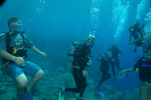 Today, we did our naturalist dives for our advanced certification and saw at least three sea turtles!! We also had a second dive, where we got to see volcanic gases rising from the seafloor. Neat! On our way back from the dives, we saw so many dolphins, and it was like they were dancing around the boat, and they were racing with the bow and showing off. We had a communication class and an oceanography class, which were enjoyed by all. Martha was a superb chef and used my “Garden of Vegan” and “How It All Vegan” cookbooks. Yummy, yummy foods.