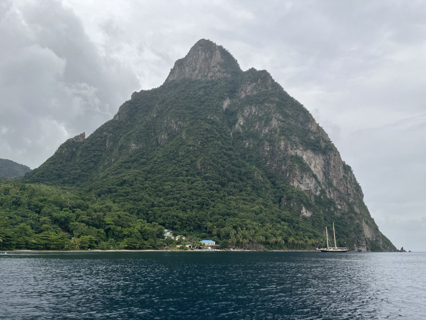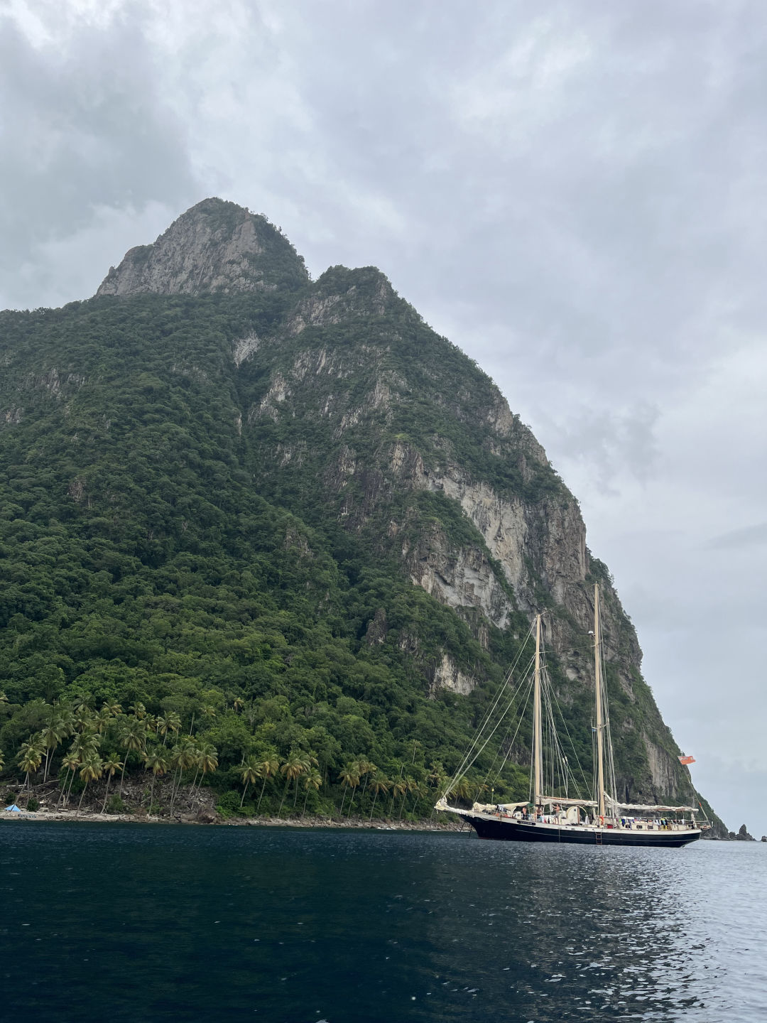 Photo 1-2: Ocean Star under the Pitons en route back from provisioning