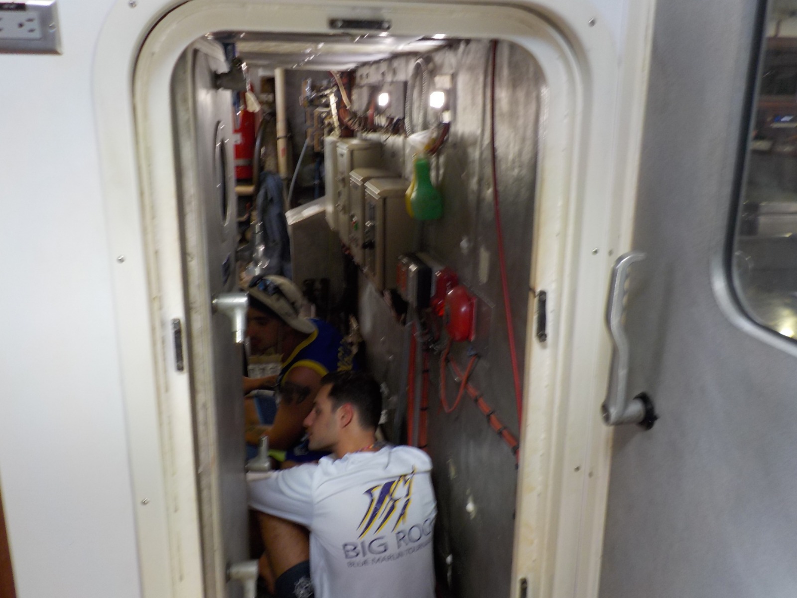 Today after breakfast, the trainee, divers, spent the morning after breakfast studying while all of us certified divers went with Simon on a short orientation dive. He tested some of our basic diving skills then we looked around at some coral heads. After lunch, we went overwatch schedules. Basically, we have to patrol the boat and make sure everything is in order. We have to check the deck, the sails, lines, portholes, electric appliances, and the engine room. The engine room is a little scary since you have to walk between hot machinery to check things, but it’s an important job that has to be done. After dinner tonight, we have our first sign-out night where we can go and have a few drinks onshore. Personally, I just want some ice cream!