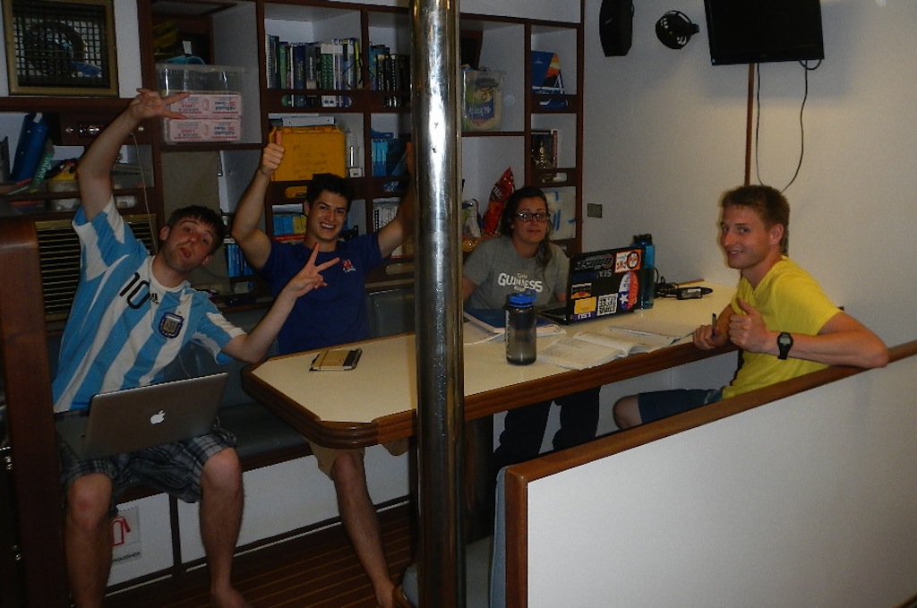 This morning was a crazy one! We raised the anchor at 7 in the morning and began to travel from Savannah Bay to Mountain Point. We had all hands on deck as our morning began quickly. Breakfast was once again at 7:30, and once again, delicious! After our short trip over, the Open Water divers (those who are currently taking the Open Water PADI course) began to set up their equipment and departed for their first open water dives!! Those who had already achieved the Open Water certification had a more relaxing morning; some read, napped, played Bananagrams, filled scuba tanks, and a whole assortment of other fun activities! We then had lunch at 12:30, and the already scuba-certified members of our fun group got to go out and do two 20 min. Dives. The entire group then cleaned and put the loose gear away as we began to set sail for North Sound, and I was fortunate enough to pilot us there. Upon our arrival, we all quickly made things ready and had our amazing lasagna dinner! Later, we went to our Intro to a Leadership course and discussed getting around Argo and passage life. Well, that’s all for today!! -Connor M., skipper of the day