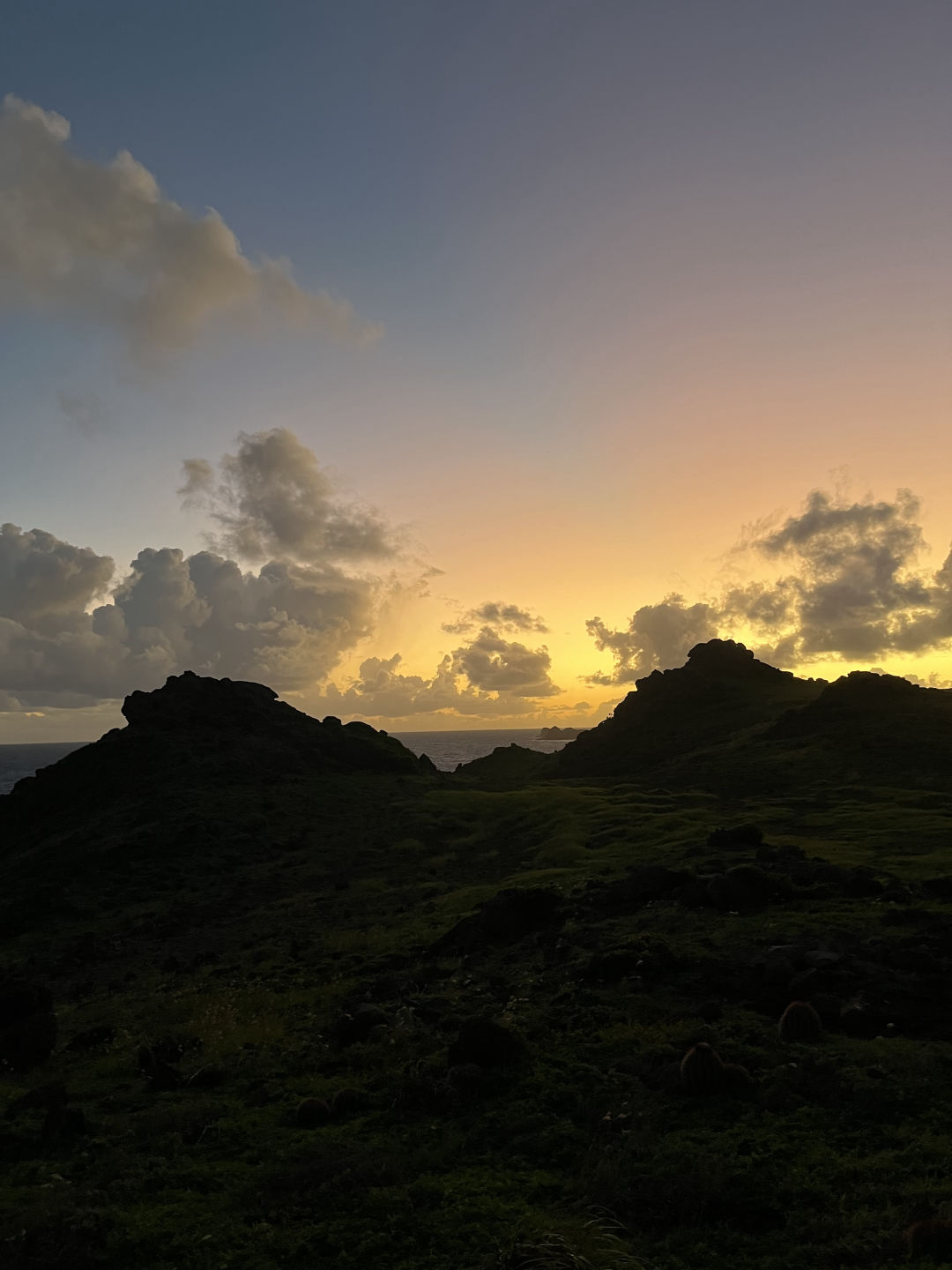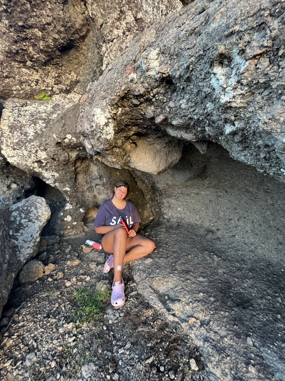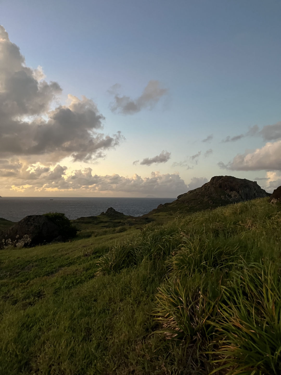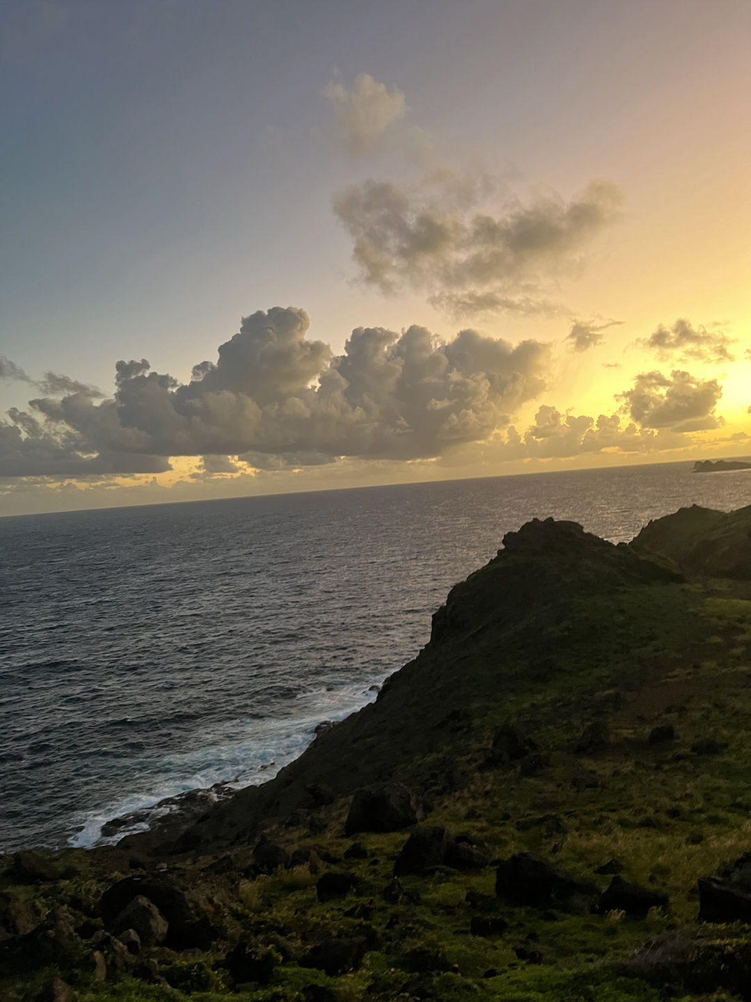 The day started for me at 5 am for another amazing sunrise hike in lle Fourchue. I filled my thermos with a hefty pour of instant coffee and grabbed my favorite hat with the hope of catching an amazing sunrise. I will definitely say the wet entry onto the beach took us all by surprise and definitely woke us up. The hike itself was stunning, and I really felt like I was in the Hobbit. The rolling green hills and fun rocky crevices made for great views, but I didn’t expect the path to be half rock climbing. This rock-climbing part most definitely contributed to a coffee-stained shirt, but it didn’t matter because, at the very top, KT, Carli, and I found the most perfect cave there ever was to enjoy the sunrise. We all agreed the cave would be a core memory for years onward– it was THAT special. I really appreciate Heather, who saved my new hat (bought in Les Saints) from flying off the top of the rocky peak and into the abyss. I almost had a heart attack as I watched my hat roll away from me in what felt like slow motion. When I lose a hat, a part of me goes with it. Anyways, the views were gorgeous, and I highly recommend the hike to anyone who has the opportunity to do it, especially during sunrise. After an amazing breakfast of egg sandwiches, we got started on our rescue diving course.