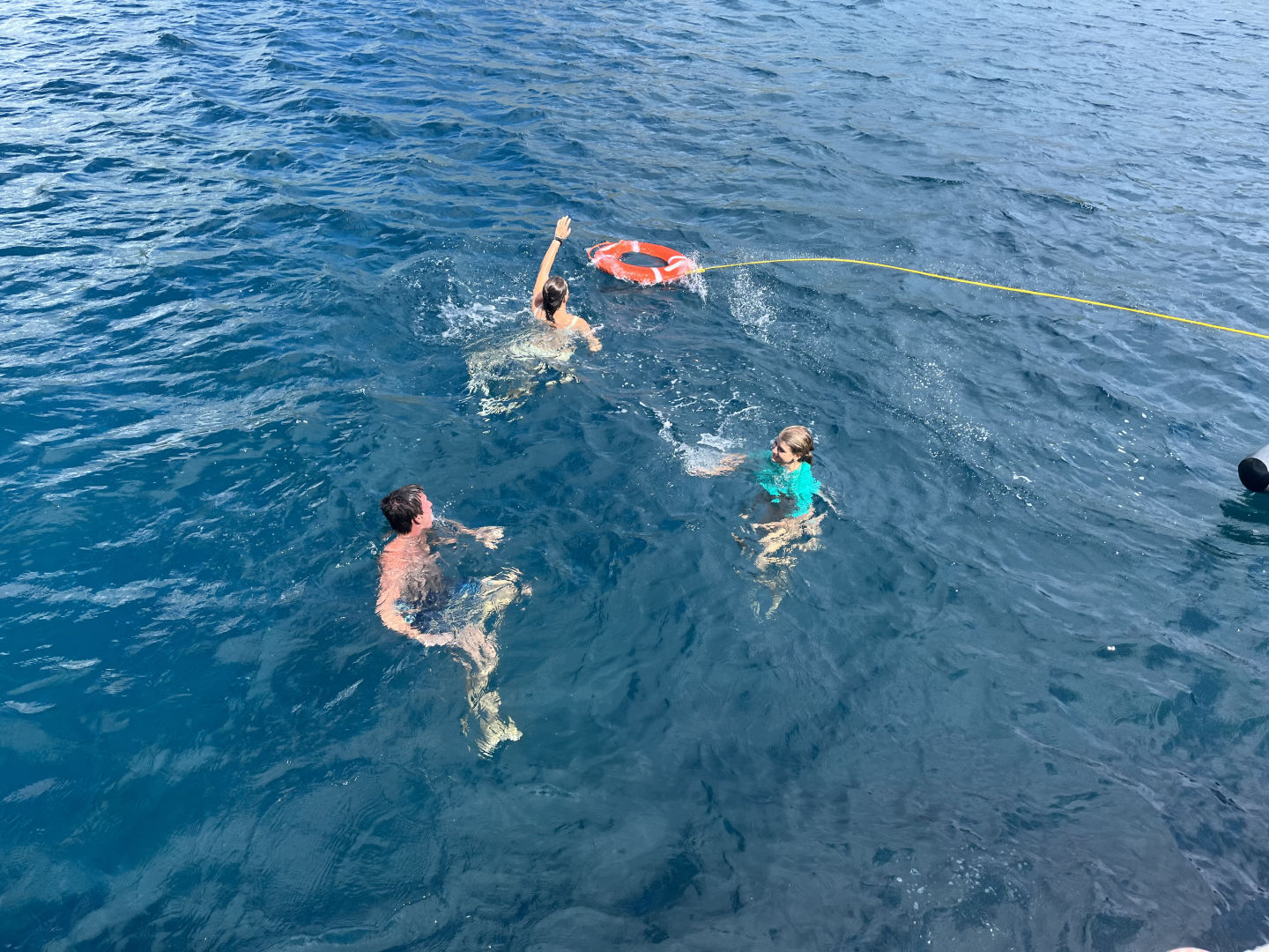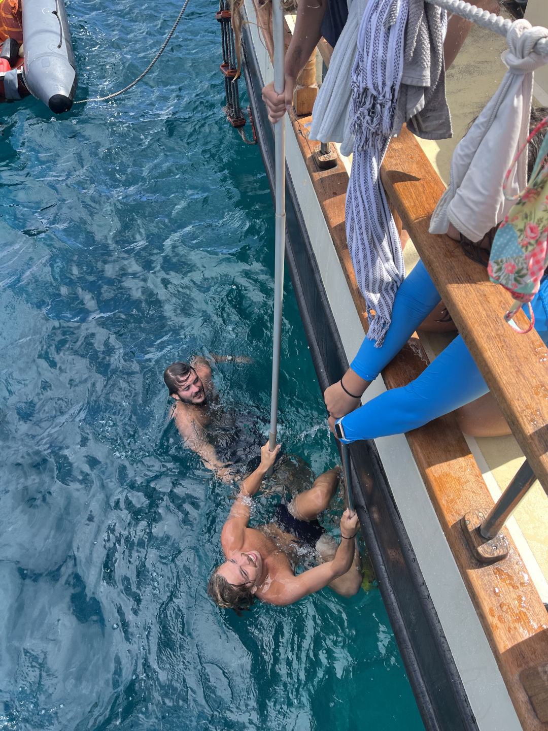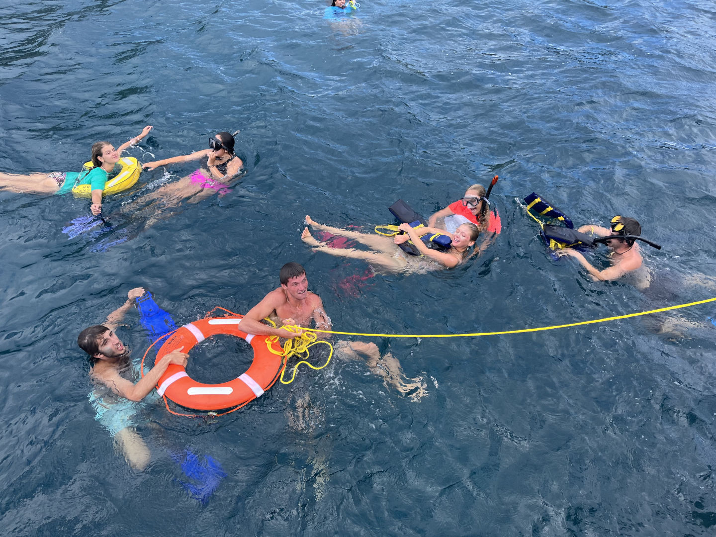Time has flown by. After Oceanography, we continued with our Rescue Diver skills, where we learned how to calm down a panicked diver underwater, how to navigate/find a lost diver, and how to safely carry an incapacitated diver to the surface. While the issues are incredibly serious, re-enacting these scenarios is hilarious. My buddy (Carli) and I definitely laughed a ton, especially when I struggled to carry her to the surface– don’t worry, she survived. Following the afternoon activities, we had a nice dinner of burrito bowls and another Rescue Diver skill session explaining how to use the various emergency oxygen sources for struggling divers. All in all, it was a great and busy day! A perfect one for my last blog post and skipper job of the program )):