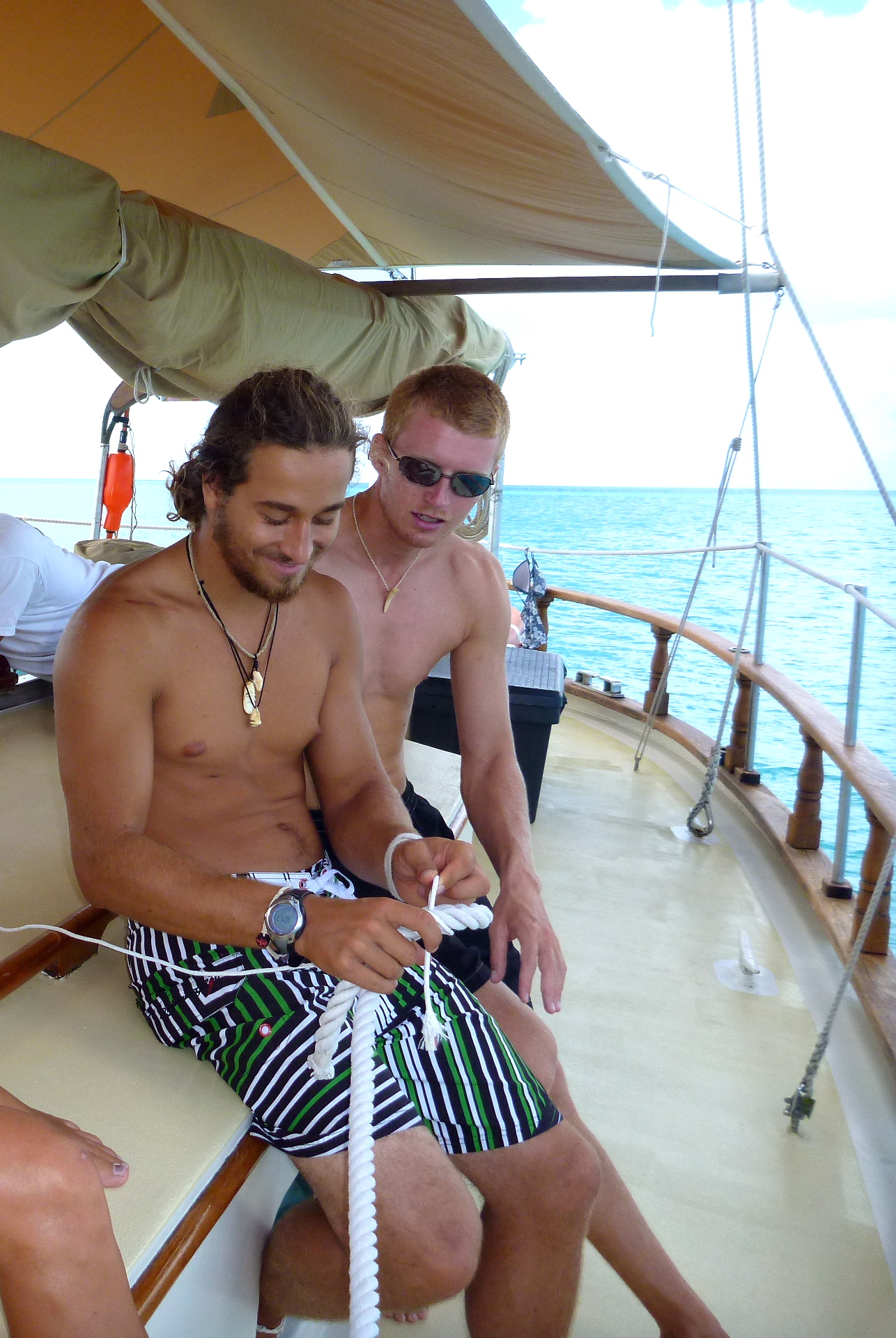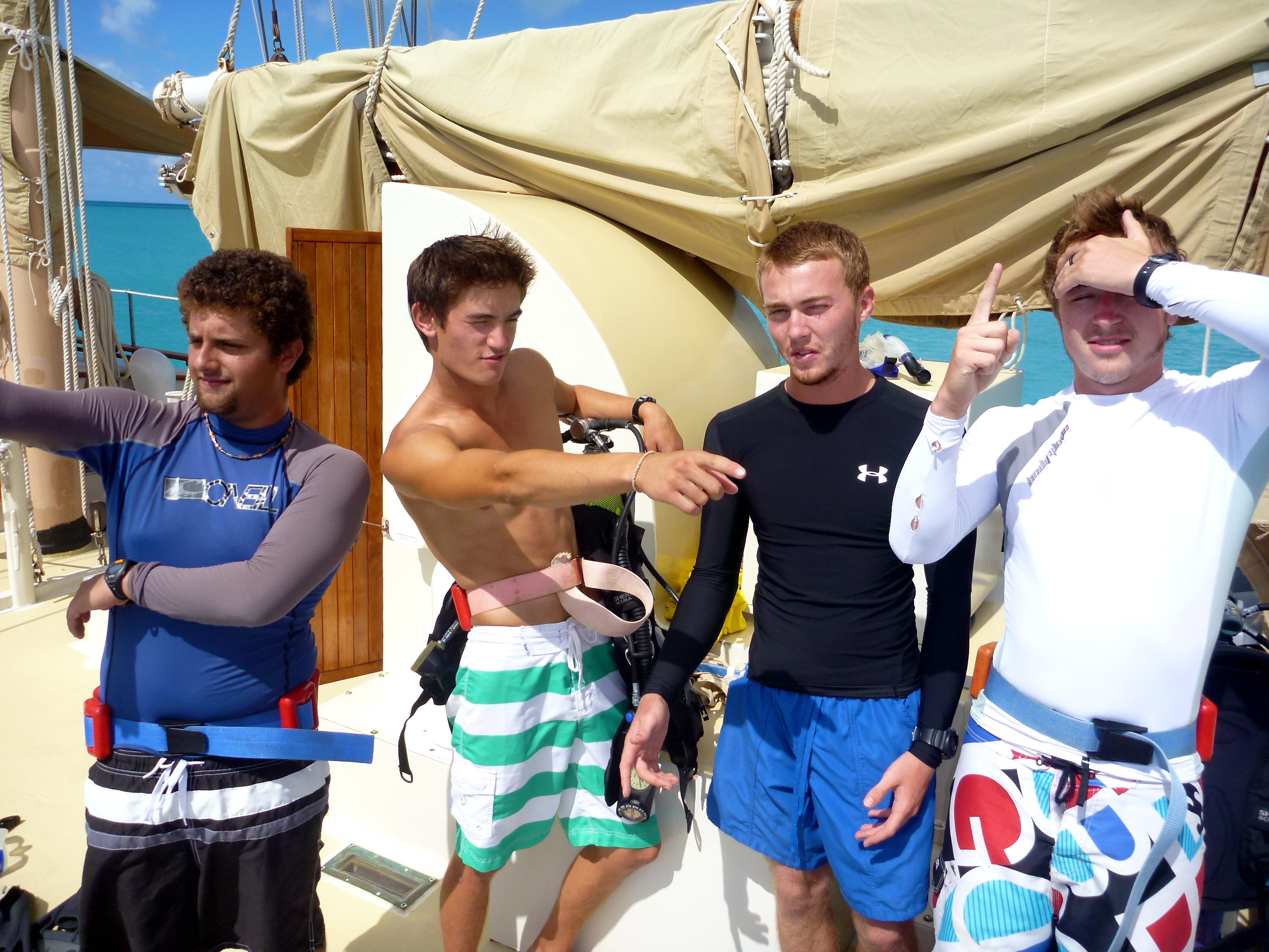 We are anchored off of a beautiful stretch of white sandy beach backed with shrubs for almost as far as the eye can see. The water is picture postcard turquoise, and beyond the sand, it is a glimpse of a lagoon. With only two small buildings in sight and the beach totally empty of any tourists, this place is perfect. We began our scheduled day with a good dose of knowledge about ocean circulation in OCE class. That was followed by even more knowledge in an OCB review for the exam tonight. For good measure, even more, knowledge was gained in briefings for our first dives of the day, finishing up boat and navigation dives (we now have four more advanced divers in our midst!), and a great session of search and rescue for the divemaster candidates. The very poor visibility conditions meant that all of these dives required expert skill to complete, and all students excelled in every way. After a break for lunch and some rescue diver videos, the water-based part of the rescue class began. The students were briefed on the procedures for self-rescue, tired divers, and panicked divers, as well as how to evaluate situations and rescue people from a boat. To ensure that all of the commotion didn’t worry our other mariner neighbors (all of the other three boats that we can see from this paradise island), the word Shenanigans’ was used instead of Help’ to convey that there was a new victim to be rescued. Our divemaster candidates and student instructors volunteered for the fun job of being rescue dummies’. As you can imagine, the screams of laughter drowned out any of the victims’ cries. By the end of the afternoon, all three candidates successfully rescued divers who unexpectedly required rescuing after the class. Well, we have just finished devouring possibly the best meal on program so far- Jakes Steaks cooked on the grill. With full bellies and hopefully fully minds the students are settling down for their marine bio quiz, we wish them luck!
