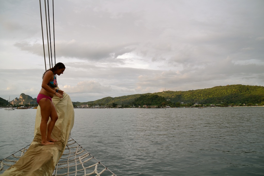 All in all, it was a good day. Our 11 open water divers got one step closer to their advanced certification with the completion of their deep dive, while the rest of us had time for some fun diving. Speckled throughout the dives in groups of 6, the 18 test-takers put our skills to the test during our Navigation exam – our MTE final. Then, we relaxed on a pleasant cruise through some of the most epic islands to our new home for the night off of Phi Phi Don. After an uneventful anchoring, we had time for a well-deserved swim before starting preparations for our massive Thanksgiving feast. Just when we thought the excitement was over and we could finally enjoy a minute of quiet during dinner, we had a moment of panic when Bob’s Booze Cruise made a beeline for Argo’s hull, but of course, our fearless captain Sam saved the day once again. With his bright, shiny flashlight and super loud whistle, he successfully redirected the vessel. With the excitement over, we ended the day with a peaceful SLD class on group dynamics.