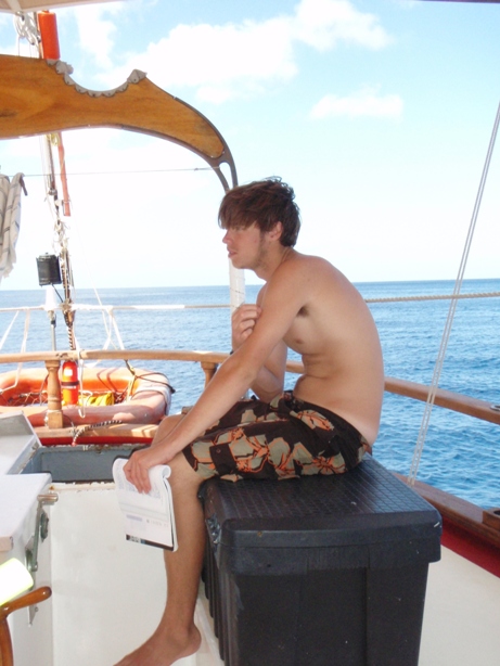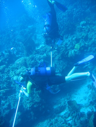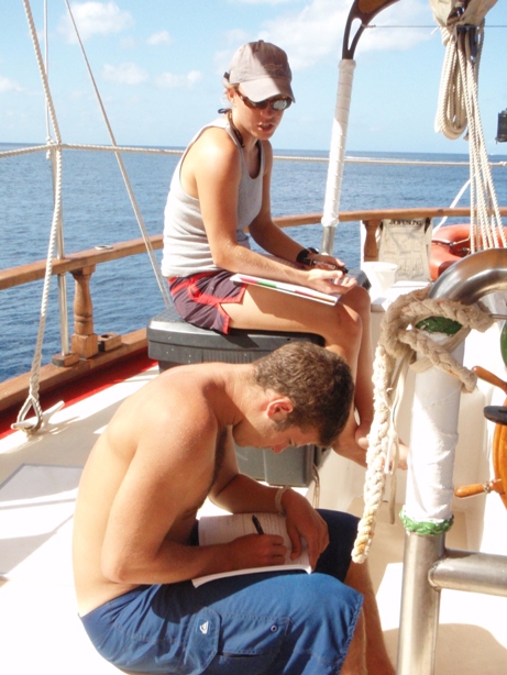 First thing this morning, we had the deep dive for the advanced open water divers. During this time, the Divemasters did a swim test and practiced skills at the surface. After lunch, we did another reef check dive, which went extremely well: lots of corals and fish. After that was a nautical science class where we learned about dead reckoning navigation. We finished off our water activities with some snorkeling to collect data for the research projects. To end the day, we had a great night and an oceanography class.