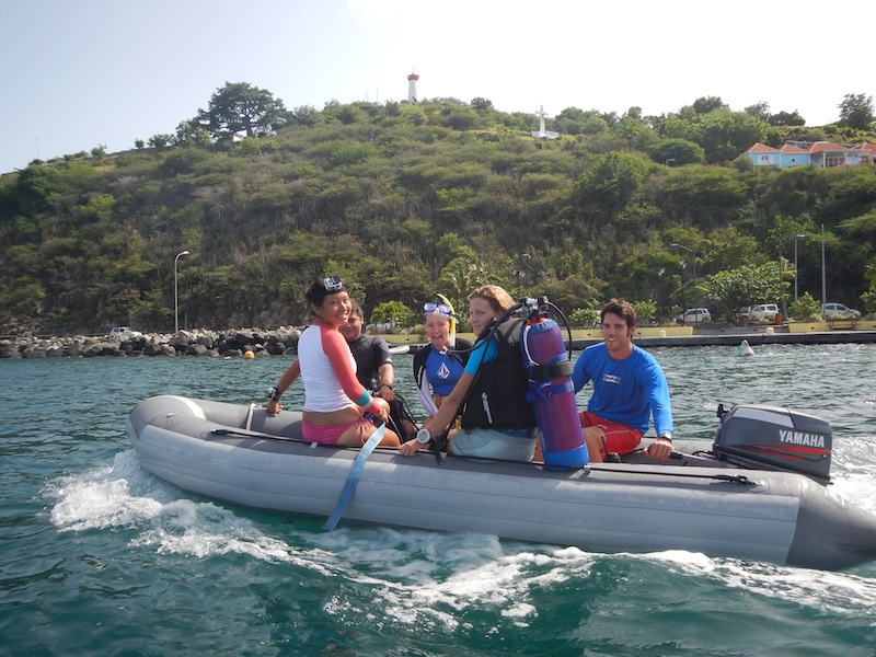 We woke up today to a beautiful morning still anchored in St. Barths. We had some delicious cinnamon rolls prepared by our chefs of the day, Ida and Tina. After breakfast, we recently certified scuba divers got to do our first solo dive out by some cool rock cropping and packed with different species of fish, from lionfish to parrotfish to a barracuda. We even found a cool swim-through to check out and saw lots of exotic fish. The advanced divers got to do their underwater naturalist diver, finding some cool critters and completing one more step towards their certification. After the dive, it was an open lunch, and some of us went to a fancy restaurant with a great view of the harbor and dined on Tuna Tar Tar, delicious salads, and great smoothies. The mango was exceptional. Following lunch, we walked up the island, exploring some historic lighthouses and doing some shopping, ending at the airfield where you could stand on a hill and watch the planes fly right over you. Needless to say, we got some great videos and a few good pictures.