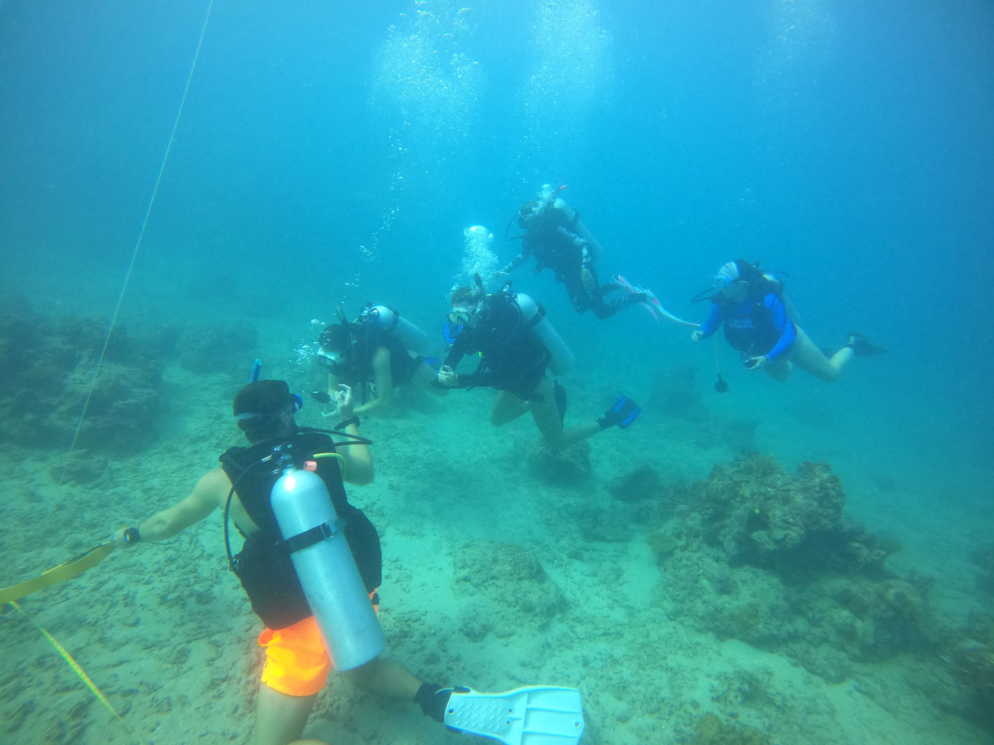 Ahoy, ye land lovers, I am currently writing from our passage to Denarau, where we first started our adventure sailing around Fiji. From Denarau, we will leave the island nation and make our way to Palau on a long passage through the pacific ocean. Despite the crew getting ready for the long voyage, we still made time to have plenty of adventures in Fiji, especially today. Today started bright and early with a dawn dive, where Kirstyn, Sydney, Elexia, Justin, Drew, Heather, Smash, and myself, dragged ourselves from our comfy (and smelling of seawater) bunks and plunged into the ocean depths in search of “something cool to talk about during lunch.” While we didn’t have the opportunity to spot a shark, turtle, or the legendary Kraken (which I’m pretty sure haunts these waters), we still got the chance to see some beautiful coral, bright anemones, a pair of giant clams, and tons of colorful fish, like the Moorish Idol which is also commonly known as the “hot fish from Finding Nemo.” The early dawn divers made it back to Vela just in time to eat breakfast with the rest of the crew. Heloise baked a delicious blueberry pastry that was paired with a fantastic coconut sauce. After breakfast, we prepared for a dive once again. This dive, however, was a skill dive, which we used to practice scuba skills to better our confidence underwater. Today’s skill dive involved underwater navigation, where the divers were tasked with objectives such as measuring distances using kick cycles, orientating themselves with a compass, and using both of those skills to voyage out in the deep blue sea and return back to the dive instructor. The skill dive was successful, and all of the crew is now confident in navigating underwater, which is pretty important for safe and successful dives. While these skill dives were not orientated to us finding exciting organisms, that did not stop Emma and me from finding a sea turtle during our skill dive, which was such an awesome experience.