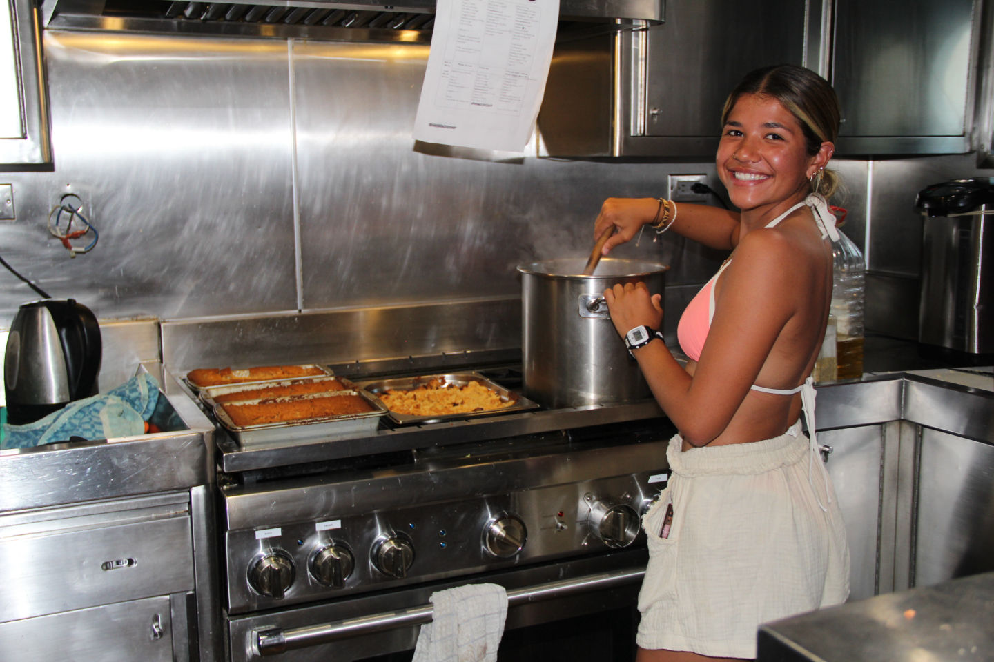 After the crew finished their skill dives, we enjoyed lunch in the warm sun onboard Vela. Heloise cheffed it up in the galley and stir-fried tofu for the crew. After lunch, the whole crew shivered in their timbers and bit their nails at the first Marine Mammals I.D. quiz that was scheduled in the afternoon. All of us packed ourselves into the saloon. We waited for the quiz to begin while frantically quizzing ourselves on what a long-snouted spinner dolphin looks like and what the key features of the false killer whale are, and how they differ from the melon-headed whale. The quiz went well, there were a few hiccups on identifying the short find pilot whale, but besides that, it was smooth sailing (sea* what I did there?). The quiz led right into boat appreciation, which is a nice way of saying, “Polish the galley and swab the poop deck.” The whole crew showed our appreciation to the boat in preparation for our passage to Palau.