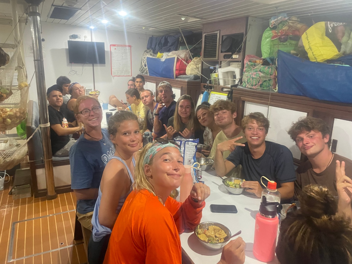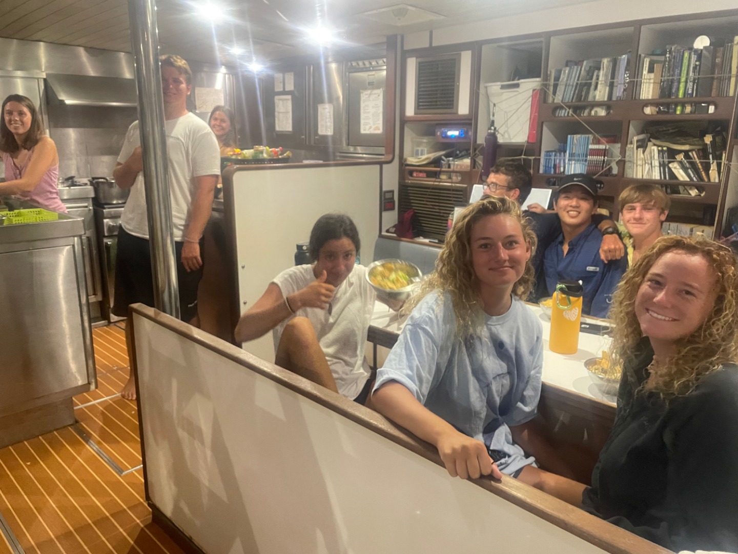 After the fourth dive, we had some downtime where people continued working on Nav Master, as they had practice time with Gabe throughout the day. For a special treat (really due to the rainstorm), we had dinner down below in the salon! The chefs made us some delicious taco bowls annnnnd Danish Christmas cookies! SO delicious! Dinner down below led to some fun conversations and an appreciation for eating a meal on a table. My squeeze question was if you were a founder of a Hogwarts house, what would your core value be, and what would your animal/emblem be? Mine was friendliness and a penguin, but answers varied from mischievous Macaques (see day 68) to narwhales with a core value of cooking shish-kabobs- very creative. Another great day here on Argo, with excitement for more diving tomorrow.