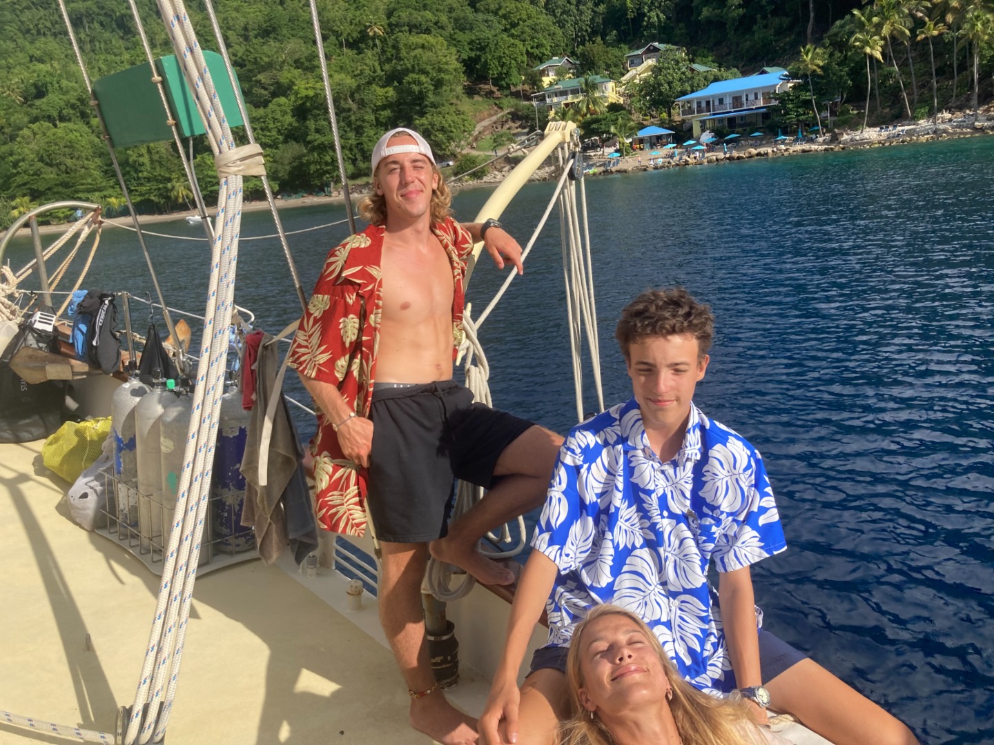 This morning I tried a new technique to wake up my fellow shipmates by gently and individually waking them up. I found this technique to be much more effective than blasting music and that the mood at breakfast was overall more positive. We’re back to diving today for the first time since arriving in St. Lucia. The divers were split into two groups today, and at 9:30, Peter, the St. Lucia dive guy, picked us up with all our dive gear. The diving here is exceptionally amazing because the Petit Piton continues down underwater, so we dive on the steep slope of an underwater mountain. The visibility was amazing, and from above, the water appears deep blue. One group went on a deep dive down to 93 feet, according to Ash’s dive computer and the other group went for superman’s flight. Superman’s flight is where the divers are carried along and around the Petit Piton by a current; no kicking is required. Tomorrow the groups will switch! Besides fun dives today, two students completed their Advanced Open Water Certification today, Maxime and myself!