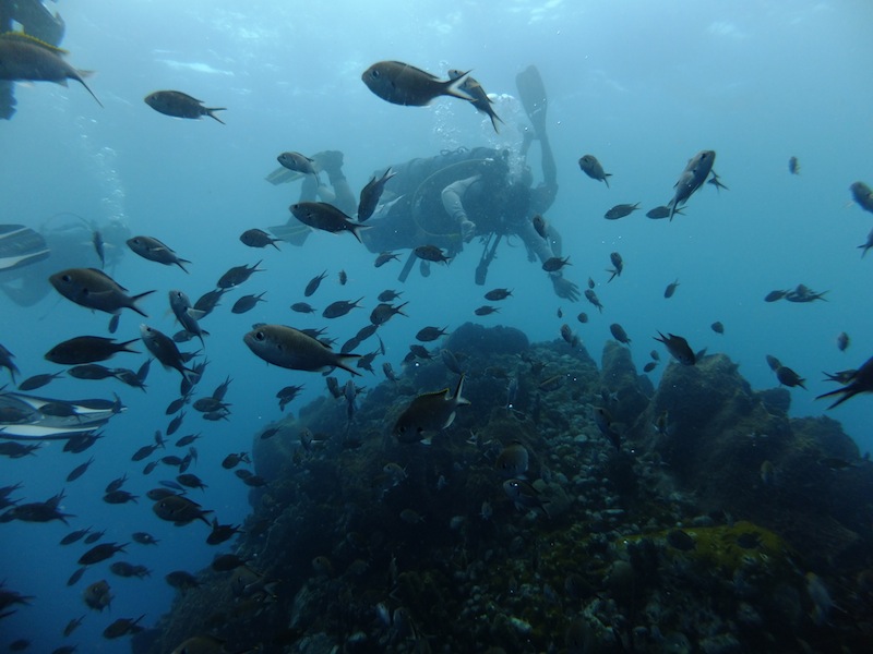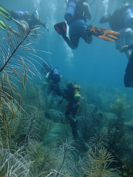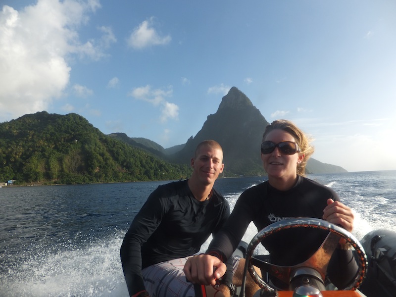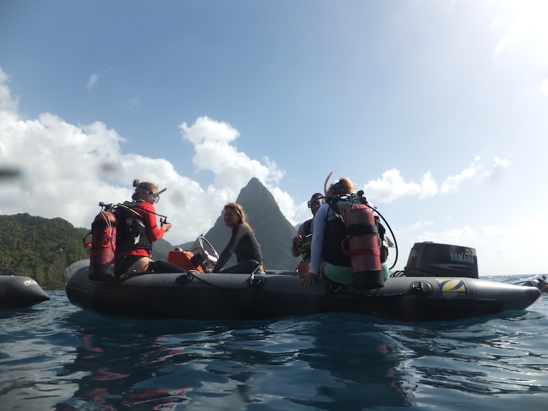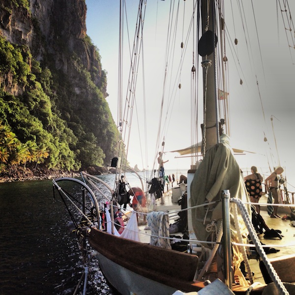 Today on Ocean Star, we woke to the lovely smell of scones baked by our very own Brooke and James. After breakfast, the students had a Marine Biology class with Nick, where they had the much-awaited lecture on fish, sharks, and rays! The SMMA (Soufriere Marine Management Association) officials came for a visit after class to teach us all a bit about what they do and what makes them so successful. Saint Lucia was actually voted one of the most successful marine parks in the world. We then jumped into the dinghies and headed off for a dive led by the SMMA. The first dive of the day was at a site just below the Petit Piton (one of two large mountains characteristic of Saint Lucia) called Superman’s Flight. It was a gorgeous drift dive. The second dive was even better at a site called the Pinnacles. It was as if someone had shrunk the Pitons and placed them on the seafloor. We saw tons of beautifully colored sponges and all sorts of fish, including a massive barracuda. We dove this as a drift dive as well, which takes much of the navigation aspect out. This afternoon, we all had a bit of time to go for a snorkel, have a swim, or catch up on some work. Nick, Ivy, and Ben went over to the other side of the harbor to check out at Bat Cave. As dark falls, hundreds of bats fly out of a slit in the side of the cliff, but during the day, it is an awesome spot to snorkel. After dinner, Nick will finish up his lecture on fish, and I will teach an SLD class. We cannot believe it is already day 40; sadly, that means we are halfway through the trip. During dinner, we discussed what we all wanted to accomplish in the next 40 days. It sounds like we all have some pretty amazing things to look forward to, from fishing to earning sailing certifications and climbing up to the crow’s nest (a little platform at the top of the forward mast). Life is pretty wonderful here on Ocean Star.