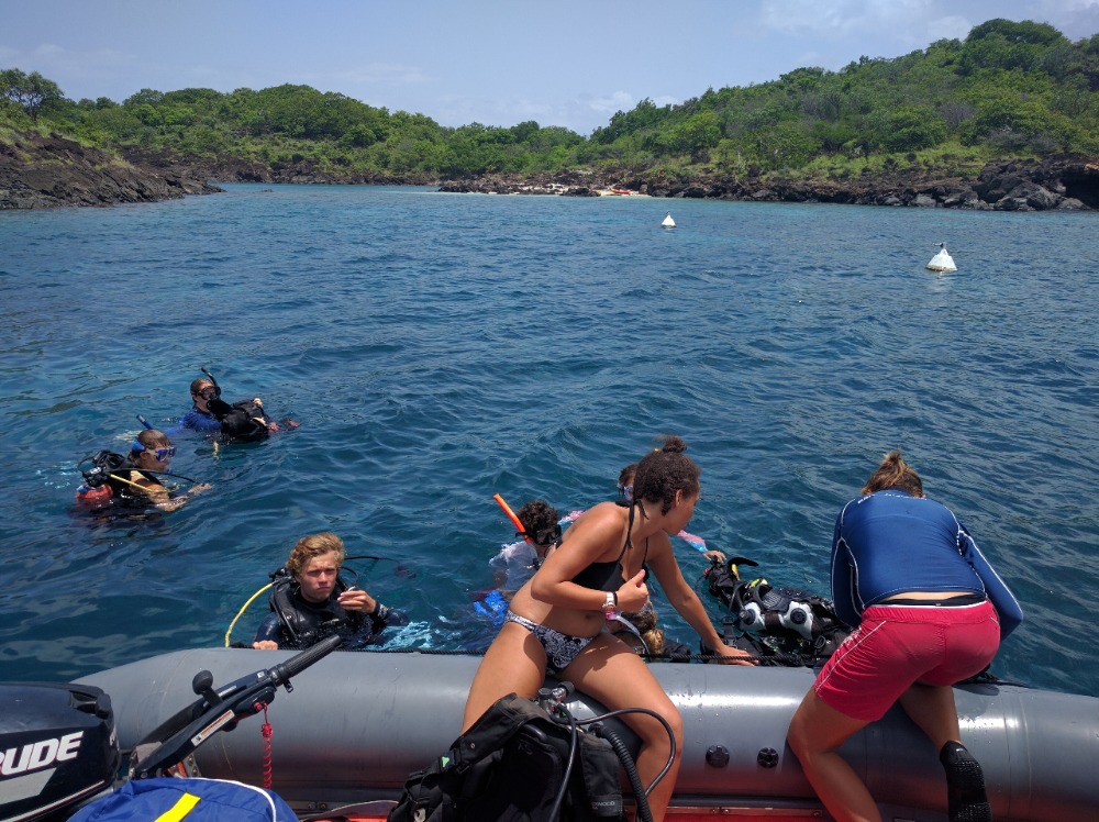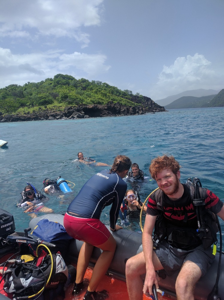 Today began with an early wake-up, followed by a quick raising of anchor and a 4-hour motor to Pigeon Island. It was there that we dove the reef, one of the reefs cherished by the famous French explorer Jacques Cousteau, made evident by the large bust of him that we found at the bottom of the bay.