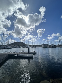What a day! Today, we had a mini voyage from the Pitons to Rodney Bay in St. Lucia. We had perfect weather for sailing and breakfast along the way. Head chef Sammy made killer cinnamon rolls! She and sous chefs Ella and Rocco were up very late last night preparing for breakfast and definitely did not disappoint. Once we arrived in Rodney, we docked and refueled. During that time, the crew got some shore time, and we got coffees and smoothies first. After that, we did some shopping. We were super hungry after walking around, so we got lunch. Some of the crew had lunch at Sea Sal, which is a super cute restaurant with very yummy food. The other half of the crew got sushi, and they said it was very delicious. After lunch, we walked around for a bit and got some much-needed ice cream. We then lounged by a pool for a bit while we waited for the dinghy to bring us back to Ocean Star. The boat ride back was beautiful, and once we returned to the boat, Sammy, Ella, and Rocco got right to work on preparing dinner. While the chefs were cooking, Heather brought back tons of provisions that we put away. It was chaotic but also fun having everyone downstairs listening to music and organizing everything. Once provisions were put away, dinner was ready, and it was pizza! Now We are currently getting the boat ready for our passage to Martinique tonight. We will sail through the night and arrive early in the morning!