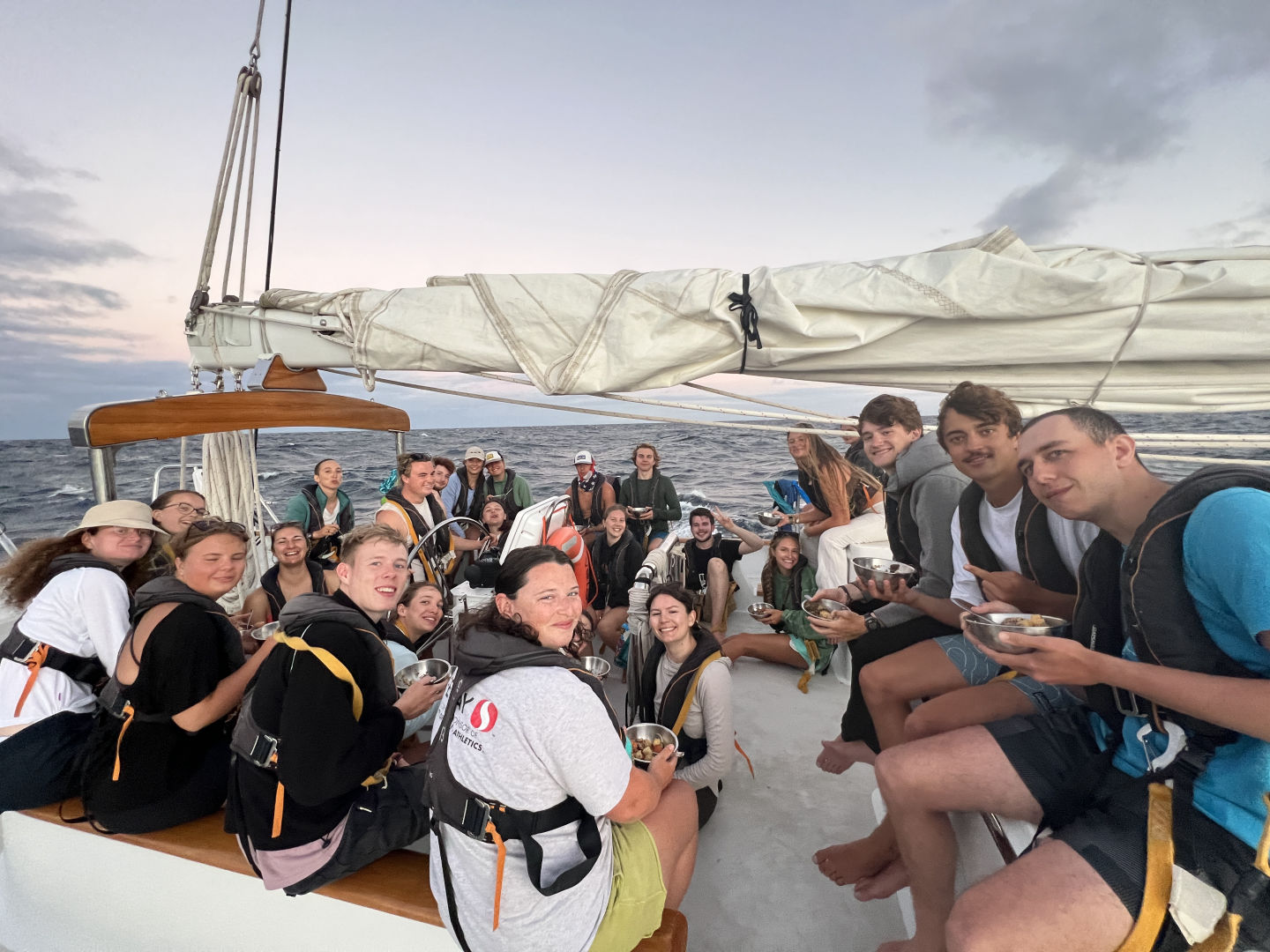 We had an Oceanography class with Steph afterward. Everyone was quite awake and felt well during class. Nobody had to leave because they felt seasick. We all had showers in the heads afterward.
