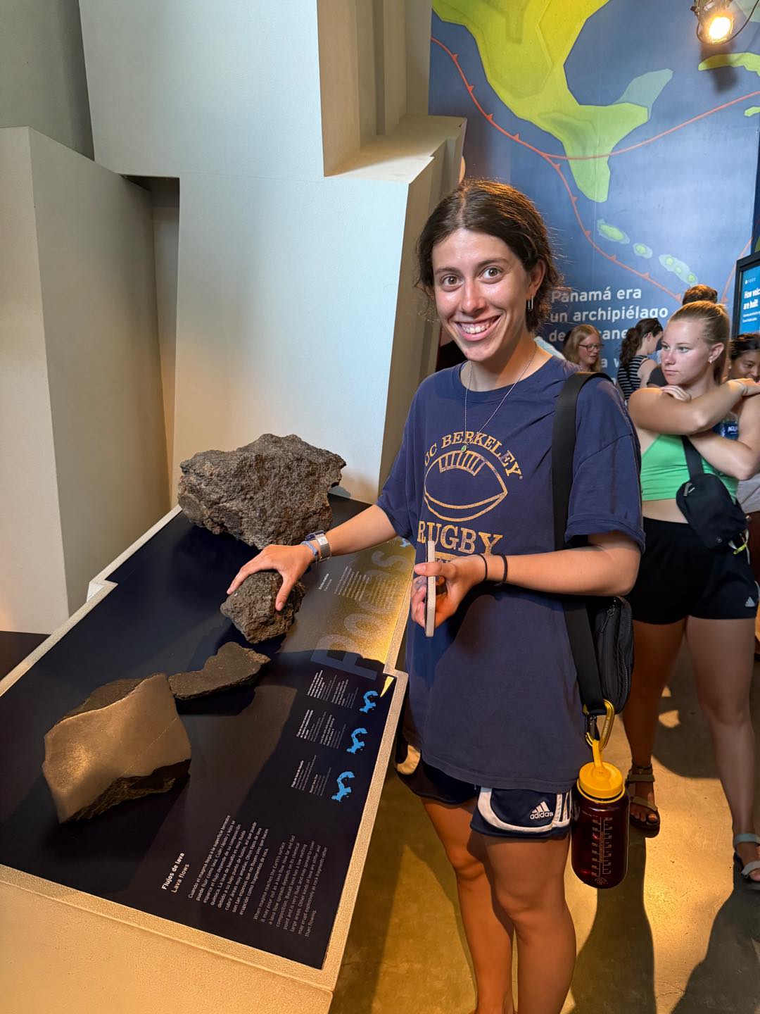 Once we got to that room it was free for all, but meet back up at the first location at 11:15 to walk back to Argo, so I proceeded to walk outside into the part of the museum displaying the arrival of humans into the Americas and the development of the different cultures and their cultural material, which is another part of my archaeology specialty, Mesoamerican culture. I was excited to learn more about the Panamanian’s from hundreds of years ago and get a glimpse into how they lived, what they ate, what they made, and generally who they were. After reading nearly every word on the 16 4-sided column-plaques, I ventured into the aquarium portion, which displayed a Caribbean-Atlantic aquarium and a Pacific aquarium, displaying the different biodiversity in each ocean. FUN FACT: These aquariums are the two largest aquariums in Central America. From there, you go up some stairs to the top half of the aquariums, and through a couple more doors, you enter the astronomy/space section. We got to learn very briefly about the involvement of Panama in the Apollo 11 and 12 missions, which I thought was pretty cool. I also learned that a native Panamanian taught the astronauts how to live and survive in the jungle should they have landed there when they returned to earth! Once I finished up in that room, I headed out to our meeting location, when I discovered there was mini gift shop and cafe, so I made a quick run in there, got a croissant for Ruby and I and headed back outside to begin our walk back with the group.