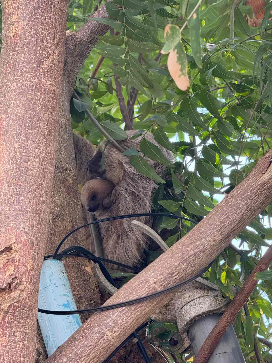 The walk back was relatively quick (or at least it felt that way), and when we arrived back at the dock, we had some time to hang out and grab some snacks before dinghy runs (Argo was being refuelled). While waiting for the runs, we were informed of more sloths, his time a baby and a mom, so I went over with Rachel to look at it. (Forgot to mention Rachel lost her AirPods, so we were waiting for my mom to come and drop them off. We ended up having to go back to Argo for a little while before going back out to pick Nick up, as he had finished his customs stuff. I got to say goodbye to my mom again, and Rachel got her AirPods, so it’s a win-win!