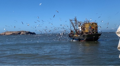As we ate breakfast and packed lunches for a day ashore, we were treated to quite a sight: a fishing boat had pulled up right in front of Vela, and it was engulfed by a massive flock of hungry seagulls.