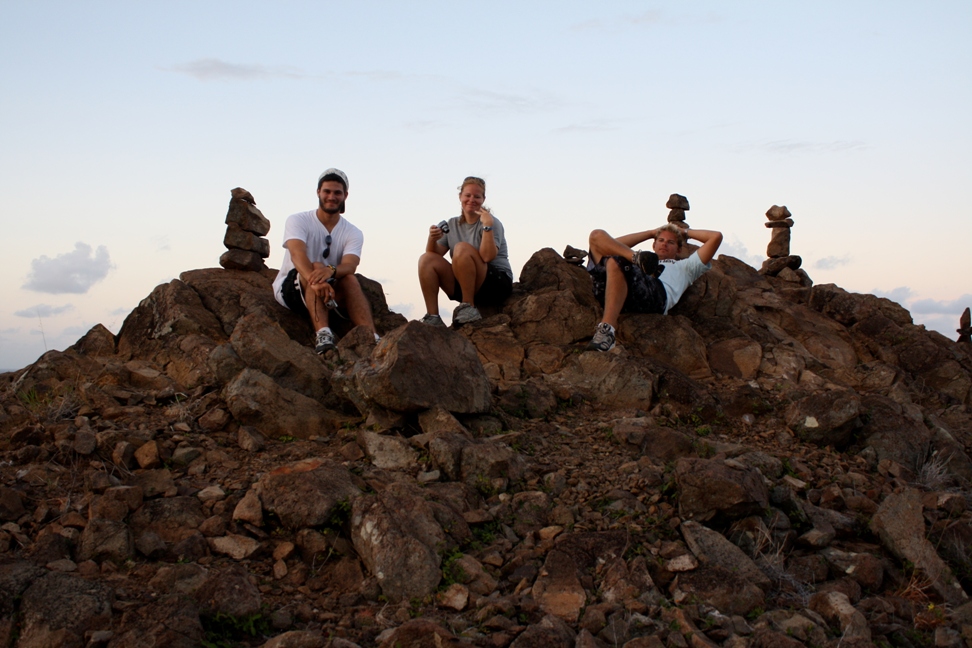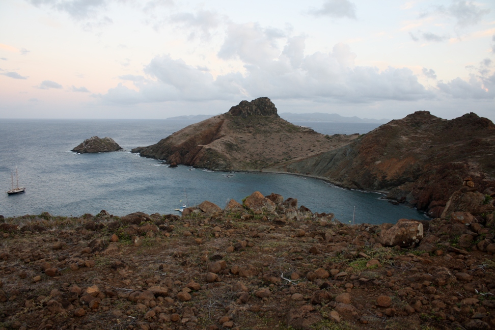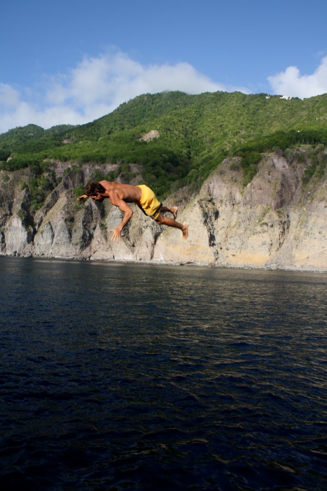 I feel like each morning that I wake up, I can expect something different, between sleeping in right till someone wakes me up for breakfast, swimming in the morning, having a conversation with someone new, or reading on deck. This morning, we were woken up for a 5 AM sunrise hike to the top of Ille Fourche. The hike was optional, and some stayed back, but I chose to go on the hike solely because I figured there would be some good photo ops, which there were. Getting to the peak of the hike was not so easy, though. Ille Fourche is not very big; no one lives on the island, and the hike we took had no trail, so we pretty much scaled a very large hill. Kristina and I took our time going up. Holding my camera in one hand and steadying myself with the other, I think we were 25 minutes behind the boys. Getting to the top of the hill, though, the view was pretty neat. Besides the fact that it looked like we were on Mars getting down, I slid on my bum for part of the way, not an easy task of walking straight down when you are surrounded by a million rocks. After the hike, we set sail to Saba this morning. We didn’t do much after we got to Saba, studied a little, stared at a dude’s boat that was on the wrong mooring, and took a swim before dinner, but I did get some good pictures of Saba and the swim. We haven’t gotten off the boat to explore Saba yet, but I am looking forward to tomorrow’s hike, which should be pretty intense. I can see the stairs that we have to climb, and they closely resemble the stairs of the Great Wall of China.